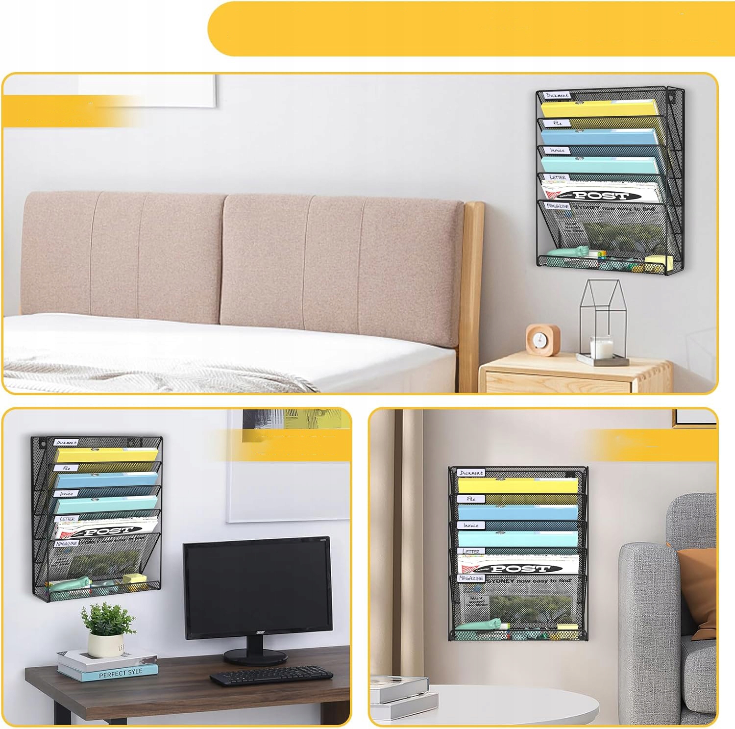 ➡️ Мода та популярність: Елегантний і сучасний сітчастий дизайн, який може прикрасити вашу стіну та підтримувати ваш офіс чи дім у чистоті та порядку, 6-ярусна настінна полиця для журналів повністю використовує ваш вертикальний простір.