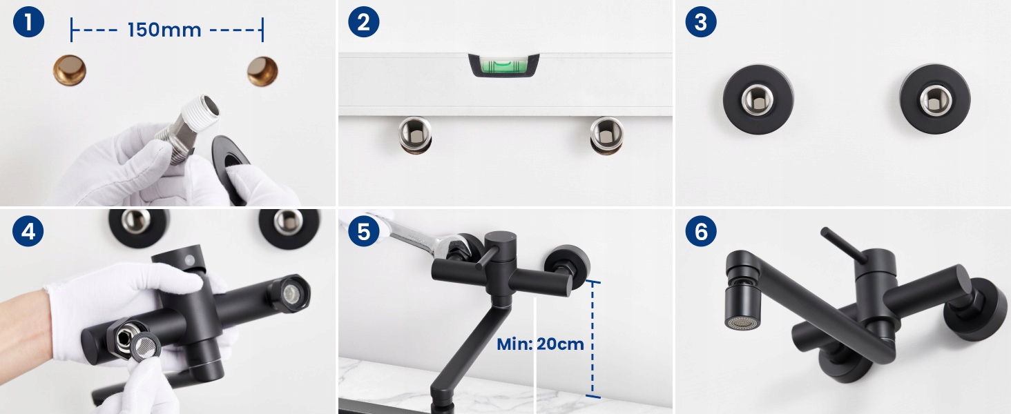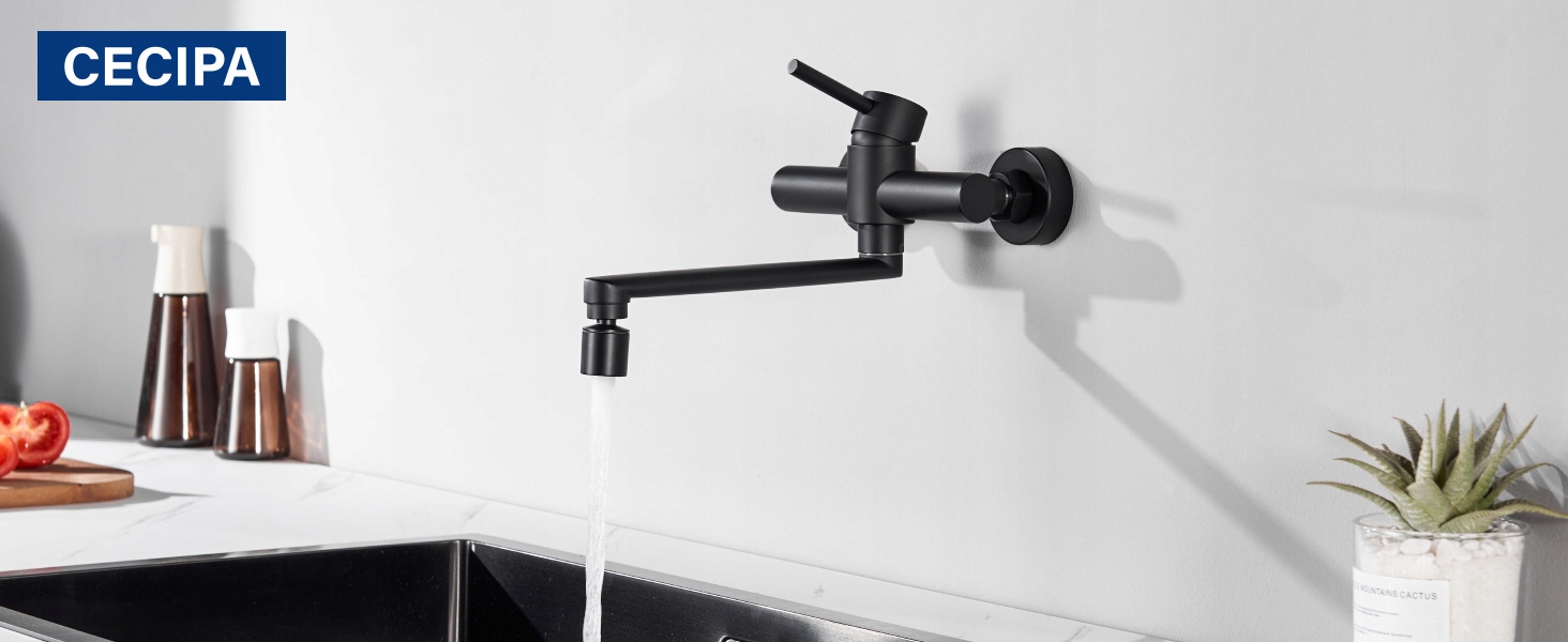 Настінний кухонний змішувач зі сталі з 2 режимами виливу, поворот на 360°, чорний