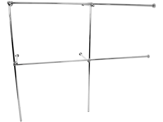 Опис : Кутова настінна полиця з системою труба-кулька з хромованої труби ø25 мм.
