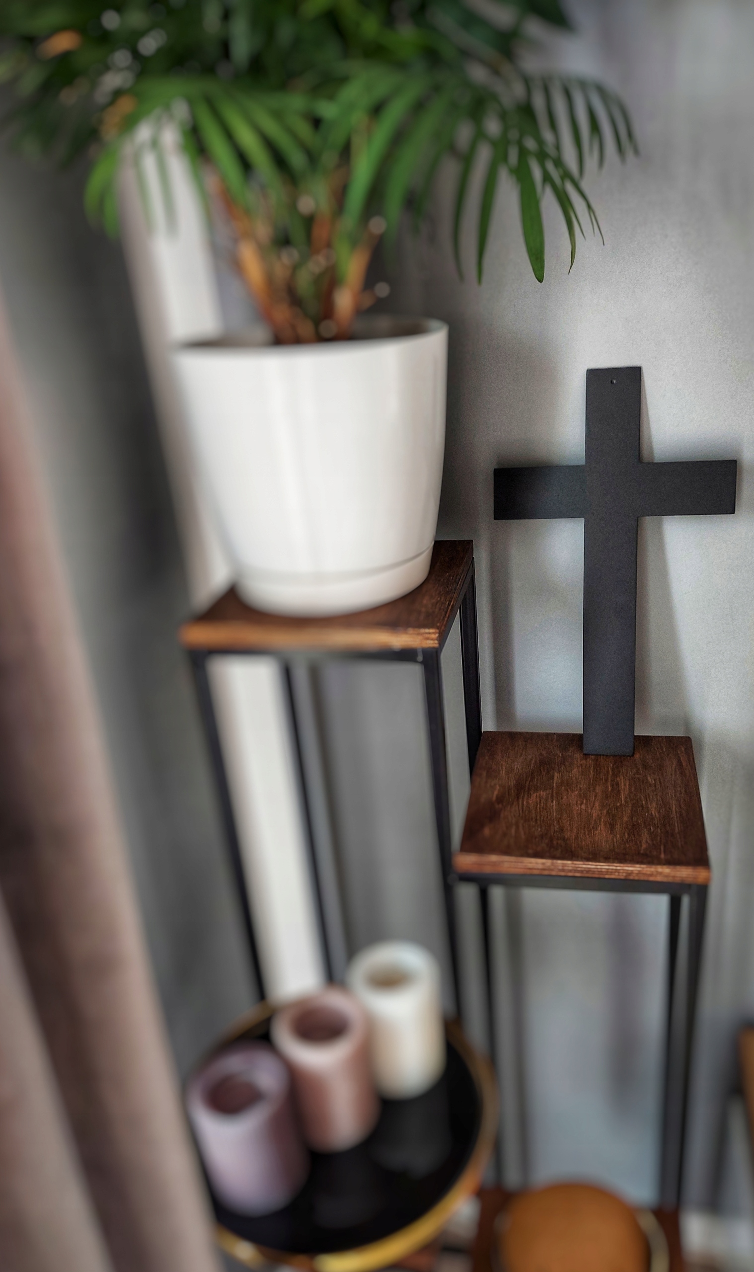 Металевий хрест для підвішування на стіні в індустріальному стилі.