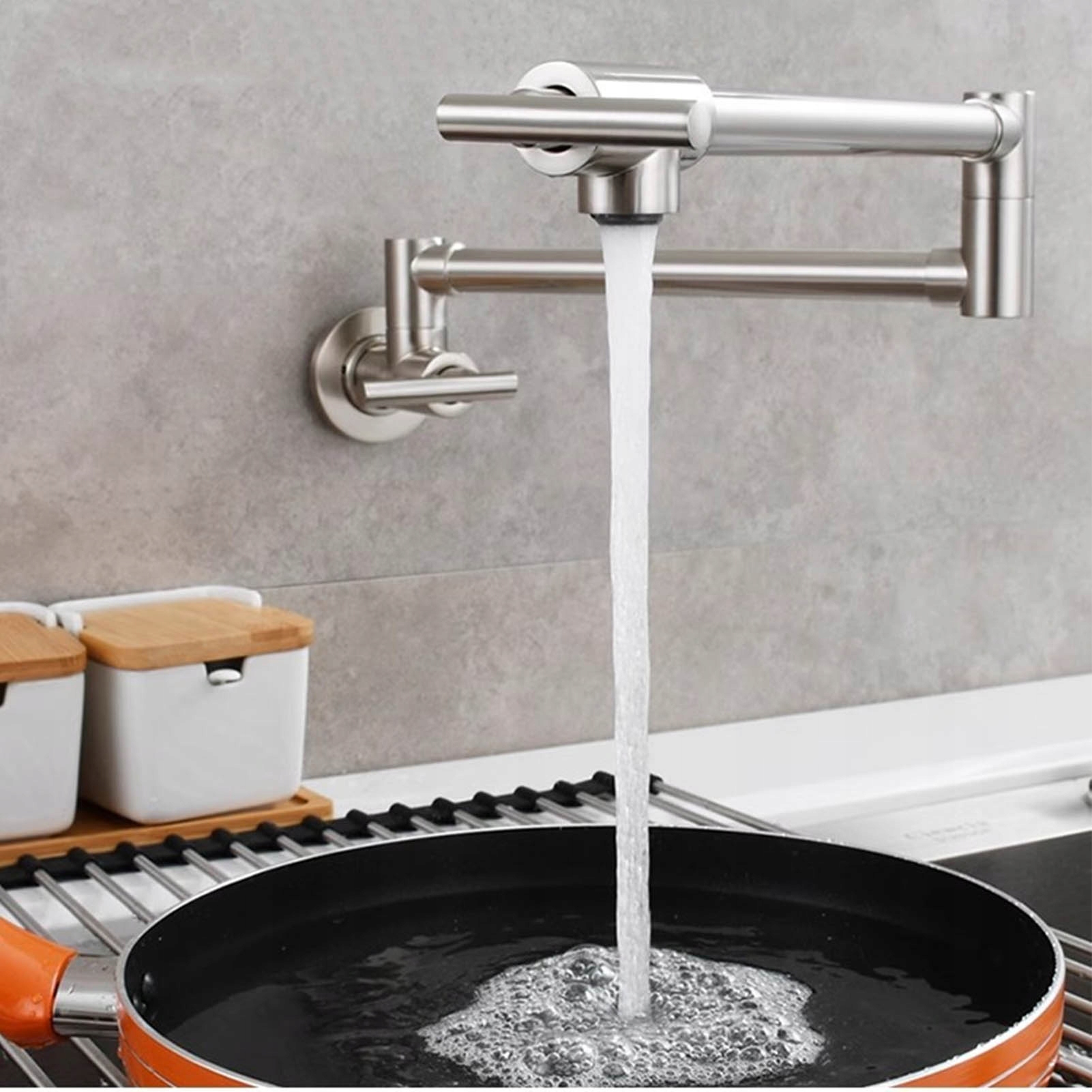 2. Складна конструкція: складна функція цього настінного змішувача для раковини забезпечує легке зберігання та економію місця, що робить його ідеальним для використання в невеликих приміщеннях.