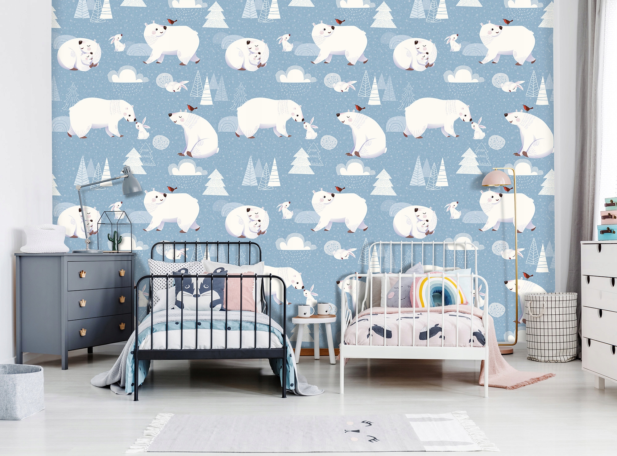 Настінний муральний вініл -білий плюшевий ведмеді зима 416x254