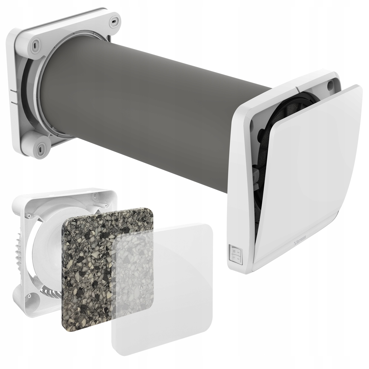 - Безшумний реверсивний вентилятор, розташований позаду теплообмінника, всередині стіни.