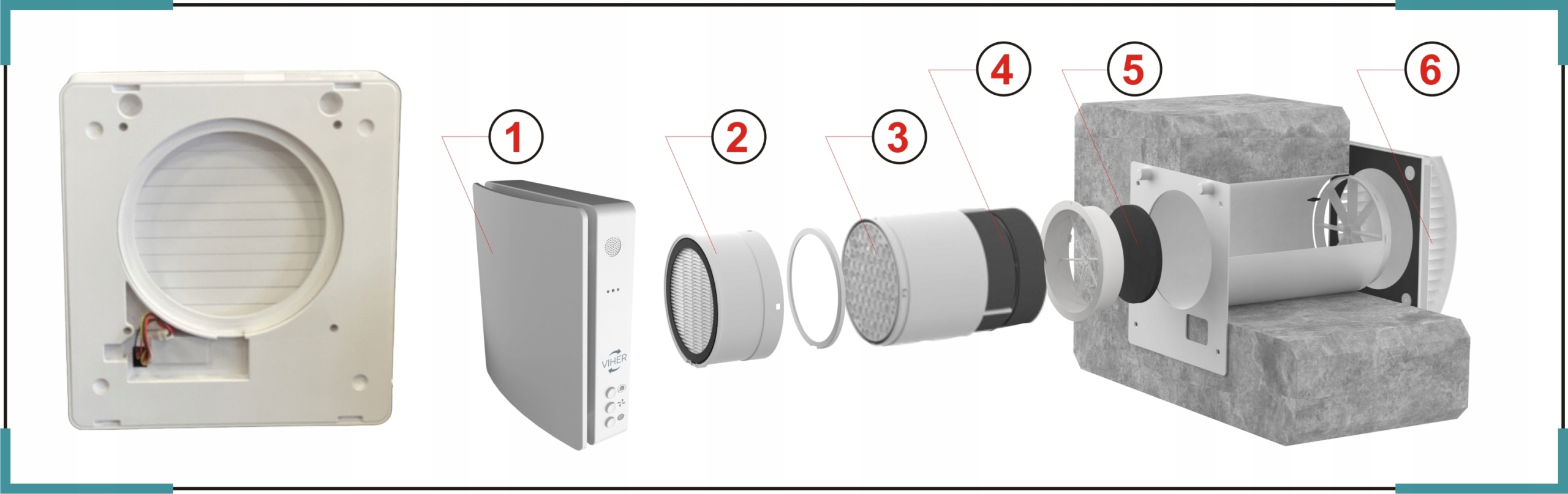 НАСТІННИЙ ДЕЦЕНТРАЛЬНИЙ РЕКУПЕРАТОР TQD VIHER – V50B З ФІЛЬТРОМ F7 - ЧОРНА ПЕРЕДНЯ ПАНЕЛЬ