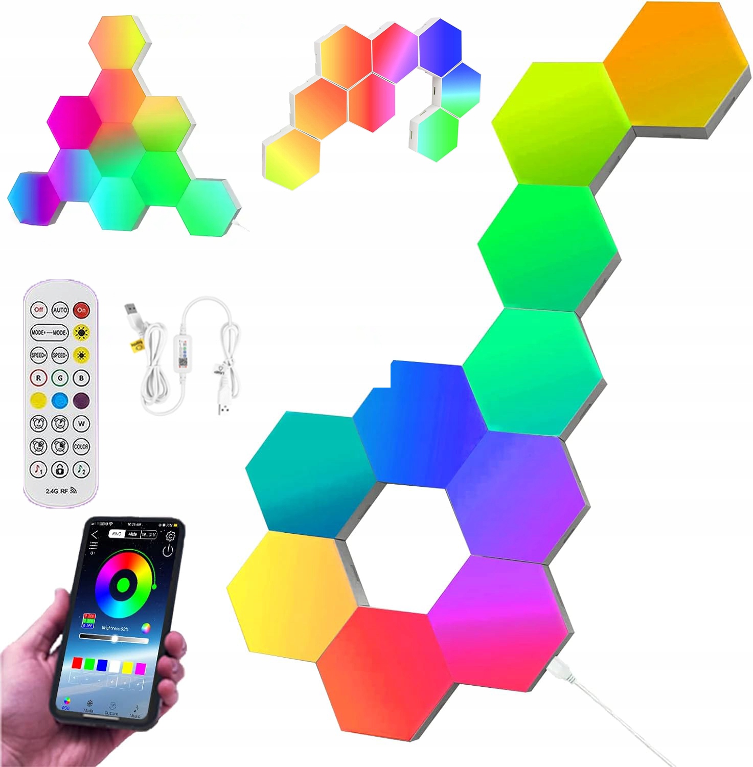 - ✅Класна шестикутна настінна лампа: із 16 мільйонами варіантів кольорів і понад 210 сюжетними режимами ця шестикутна настінна лампа пропонує безмежні можливості освітлення. Створіть ідеальну атмосферу для кіновечорів, вечірок та ігор. Це ідеальне доповнення до домашнього кінотеатру, ігрової кімнати чи різдвяних прикрас.