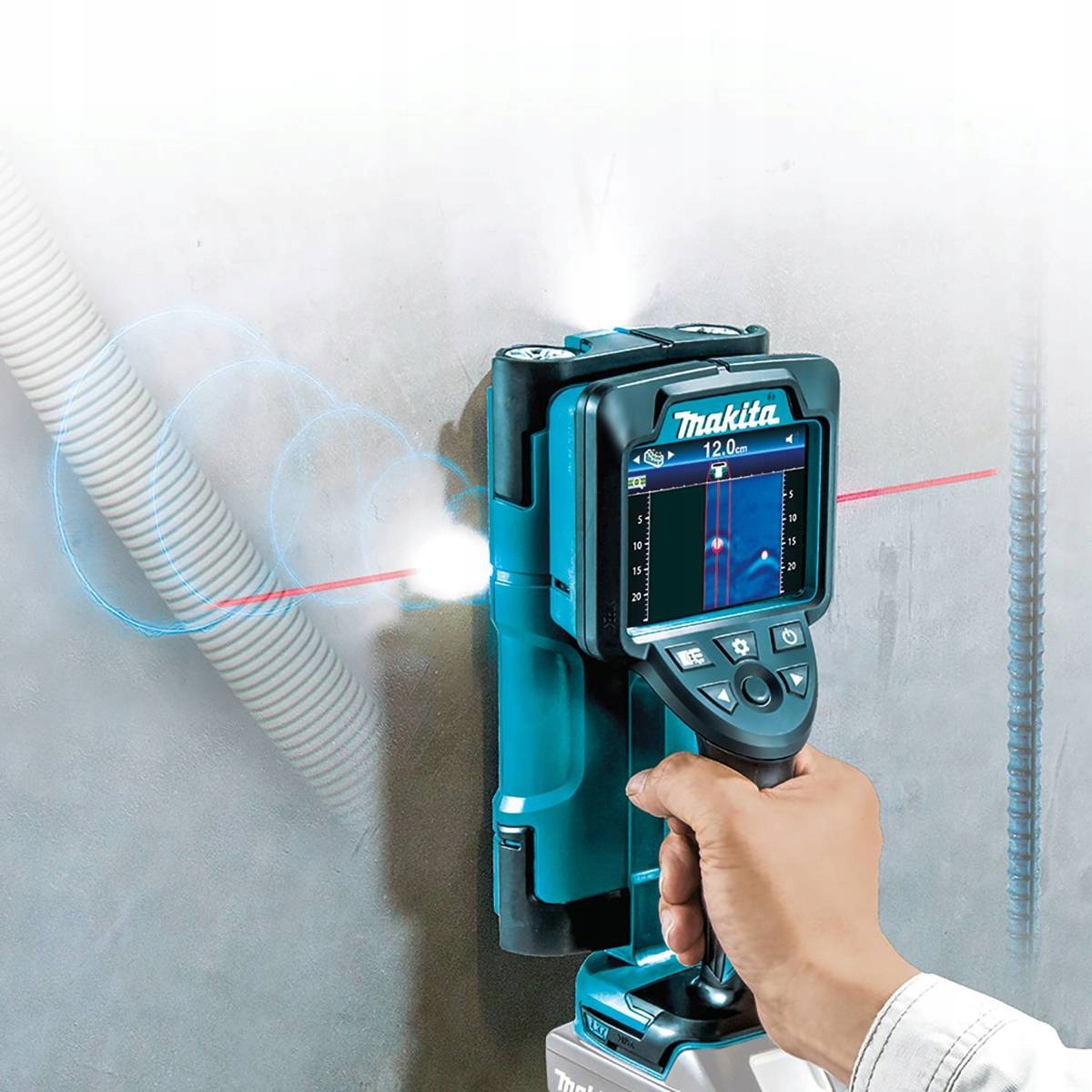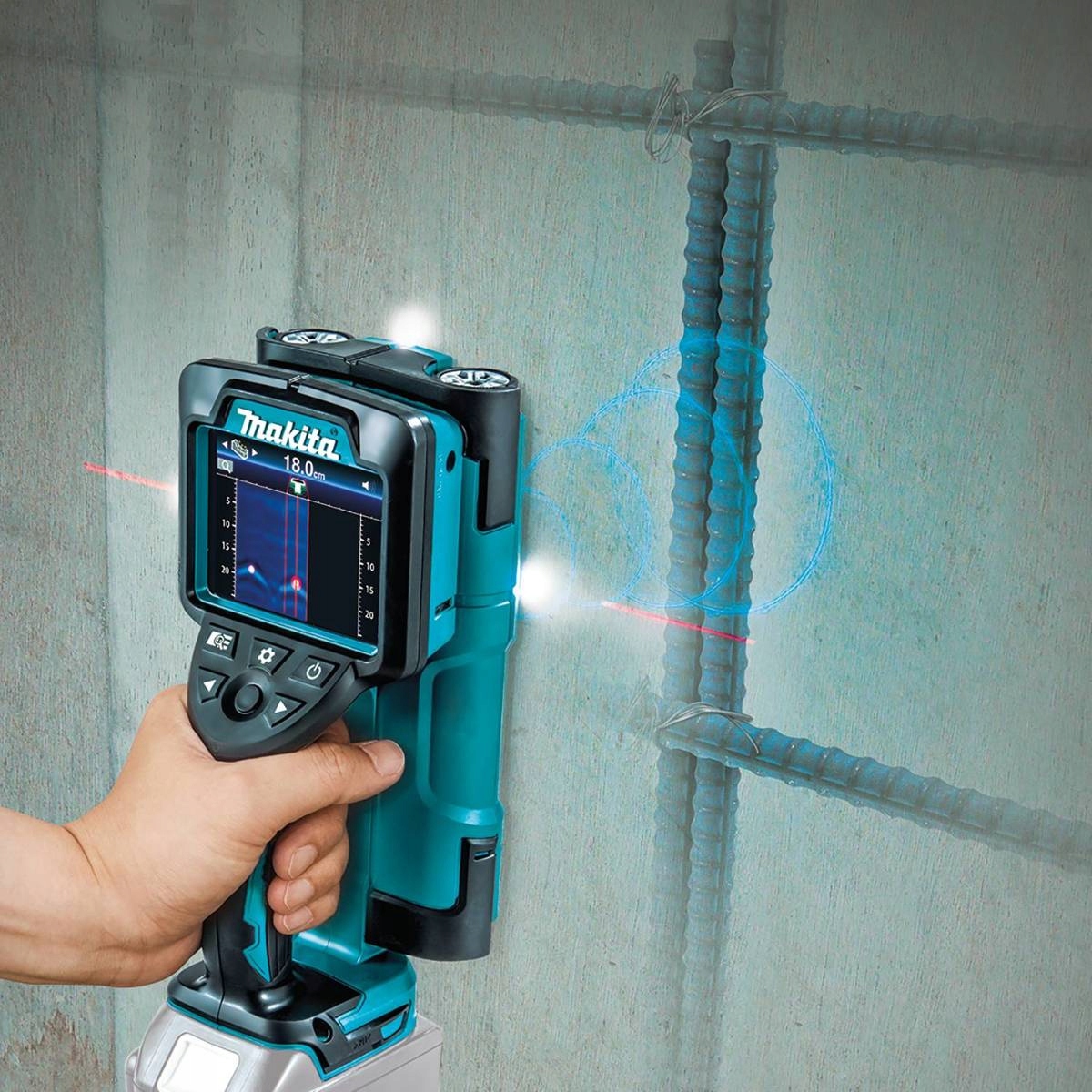 - Дозволяє виявляти об’єкти в бетоні, наприклад метал, електричні кабелі під напругою, пластикові труби тощо.