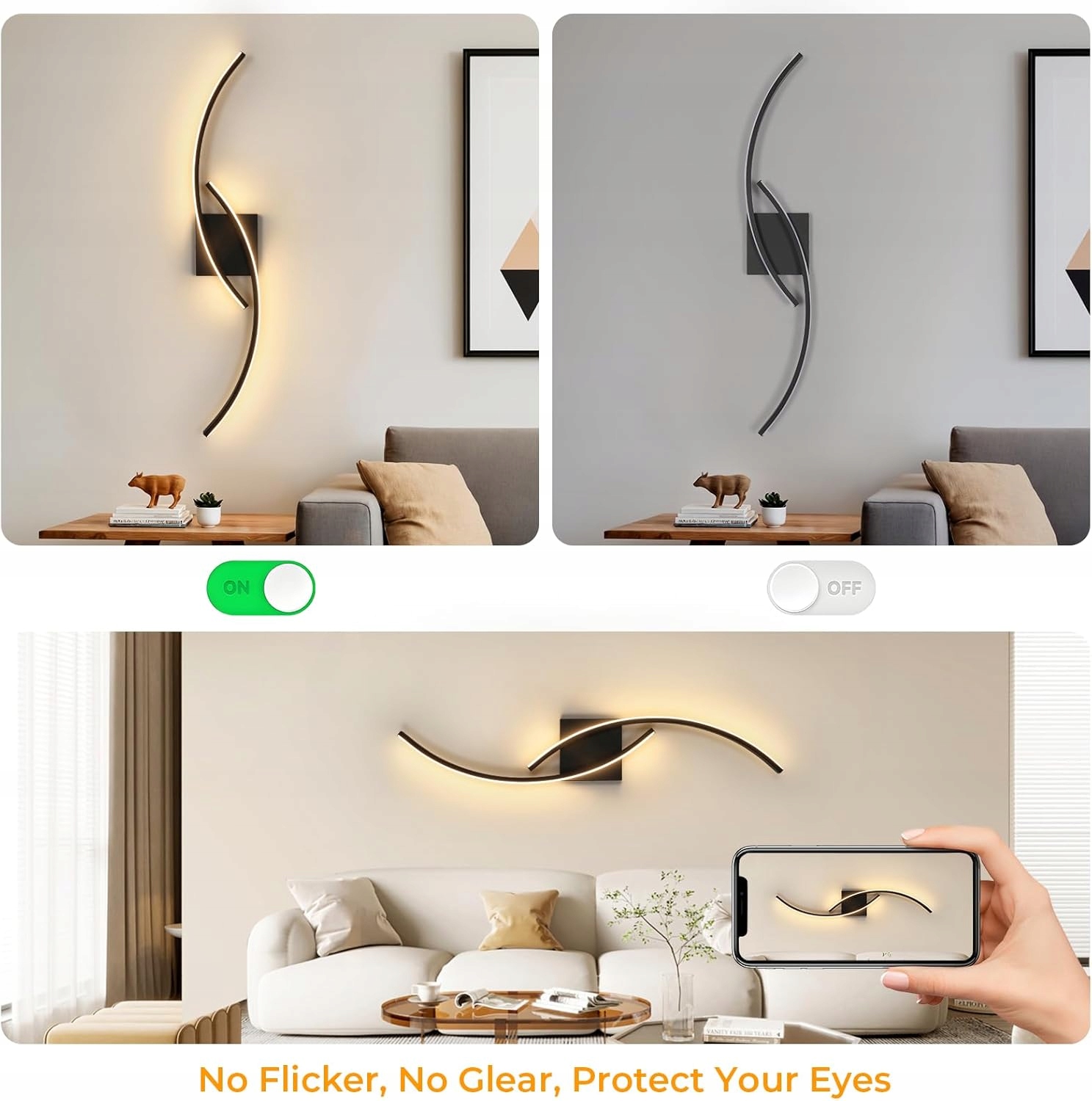 Сучасний світлодіодний настінний світильник із елегантним і простим дизайном з довгими хвилями. На обох корпусах світильників є додаткові світлодіодні джерела світла, які надають світлу тривимірності та додають стіні сучасний характер. Коли світло увімкнене, воно є стильним інструментом освітлення, а коли світло доступне, воно стає додатковою прикрасою вашого дому.