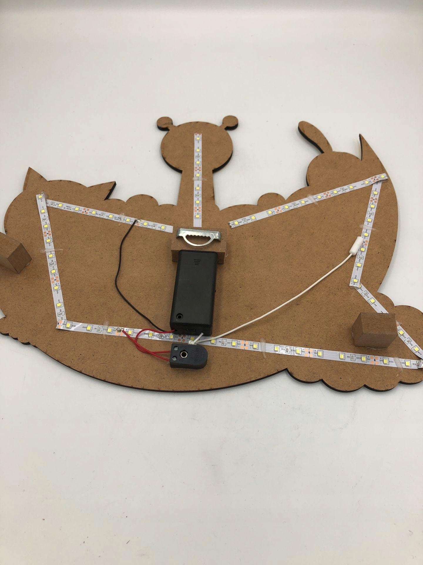 Дерев’яні світильники пофарбовані натуральною, імпортною фарбою, яка не містить хімікатів та пластмас, відповідно до стандартів ЄС, на сирому МДФ та класі. На задній частині освітлення акумулятора 9В є вішалка, його можна легко прикріпити до нігтя