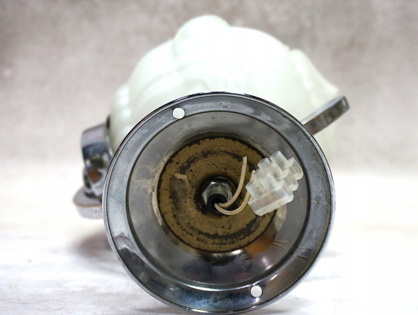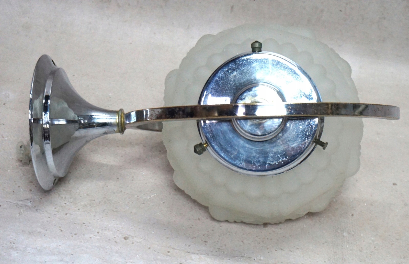 Хромована з декоративним скляним абажуром білого кольору