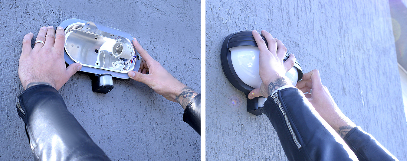 Також налаштуйте світлочутливість від 3 до 2000 ЛЮКС. При установці ручки управління в максимальний правий кут (значок сонця) - лампа вмикатиметься при виявленні руху, навіть вдень. Однак, чим ліворуч ви повертаєте ручку, тим темніше навколишнє середовище вимагатиме від настінного світильника. Якщо встановити ручку управління в максимальний лівий кут (значок місяця) - лампа вмикатиметься тільки коли буде повністю темно.
