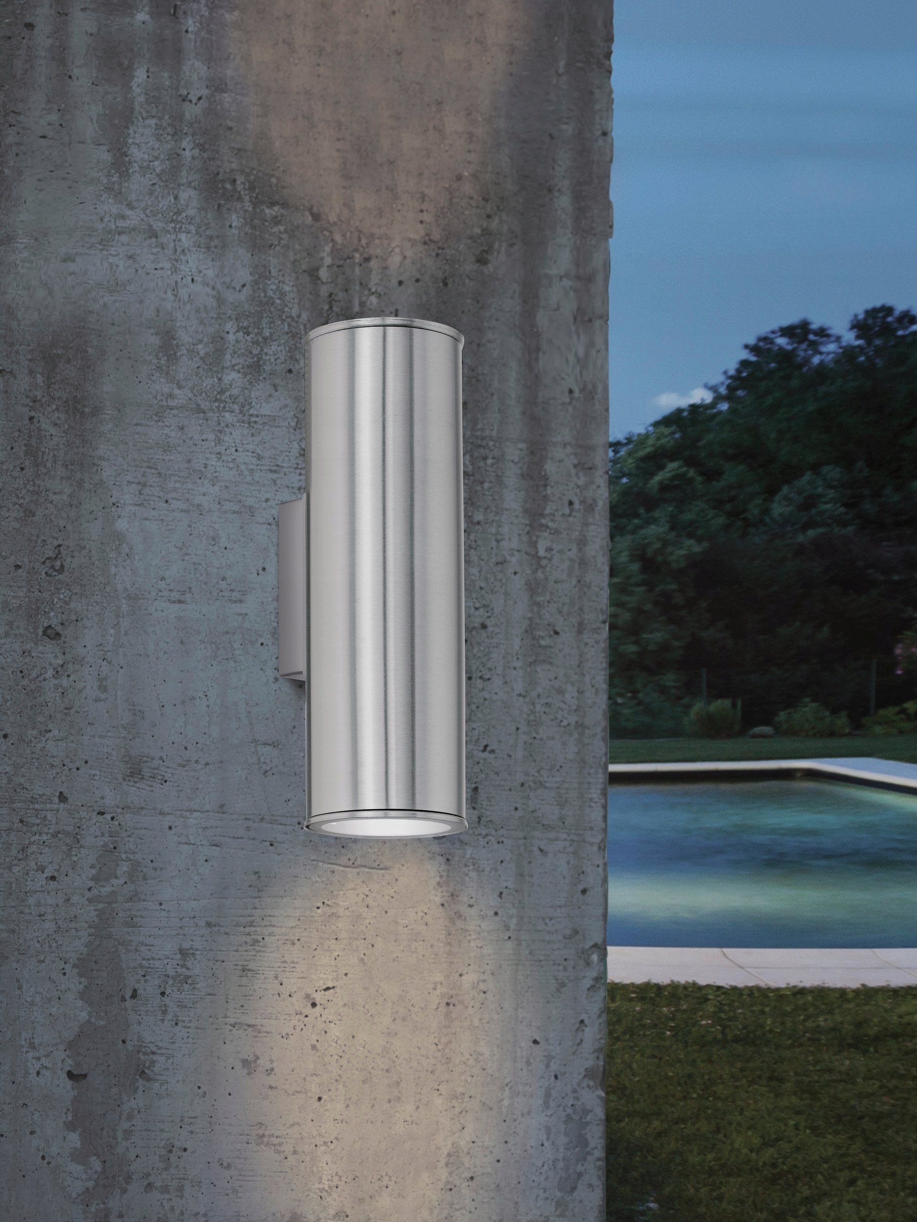 Зовнішній настінний світильник — це садовий настінний світильник із серії RIGA. Корпус лампи виготовлений з нержавіючої сталі. Джерелом світла є дві змінні світлодіодні лампочки GU10. Лампа поставляється з лампами потужністю 3 Вт, які випромінюють тепле світло. Настінний світильник світить вгору та вниз, створюючи красиве освітлення на фасаді.
