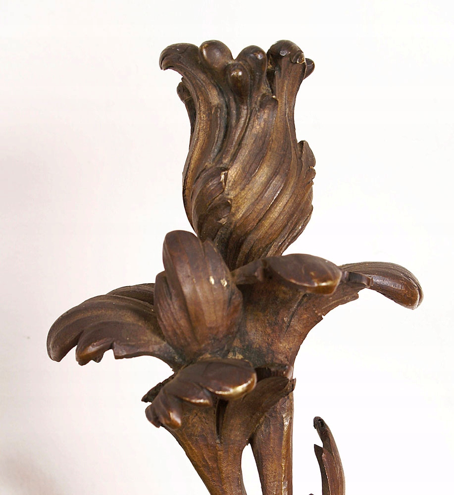 трираменний, з раменами у вигляді вигнутих гілок аканта. Кожне з рамен розміщено на різній висоті, а чашечки в накінченні закручені навколо своєї осі. Листя та чашки з тонким різьбленням.