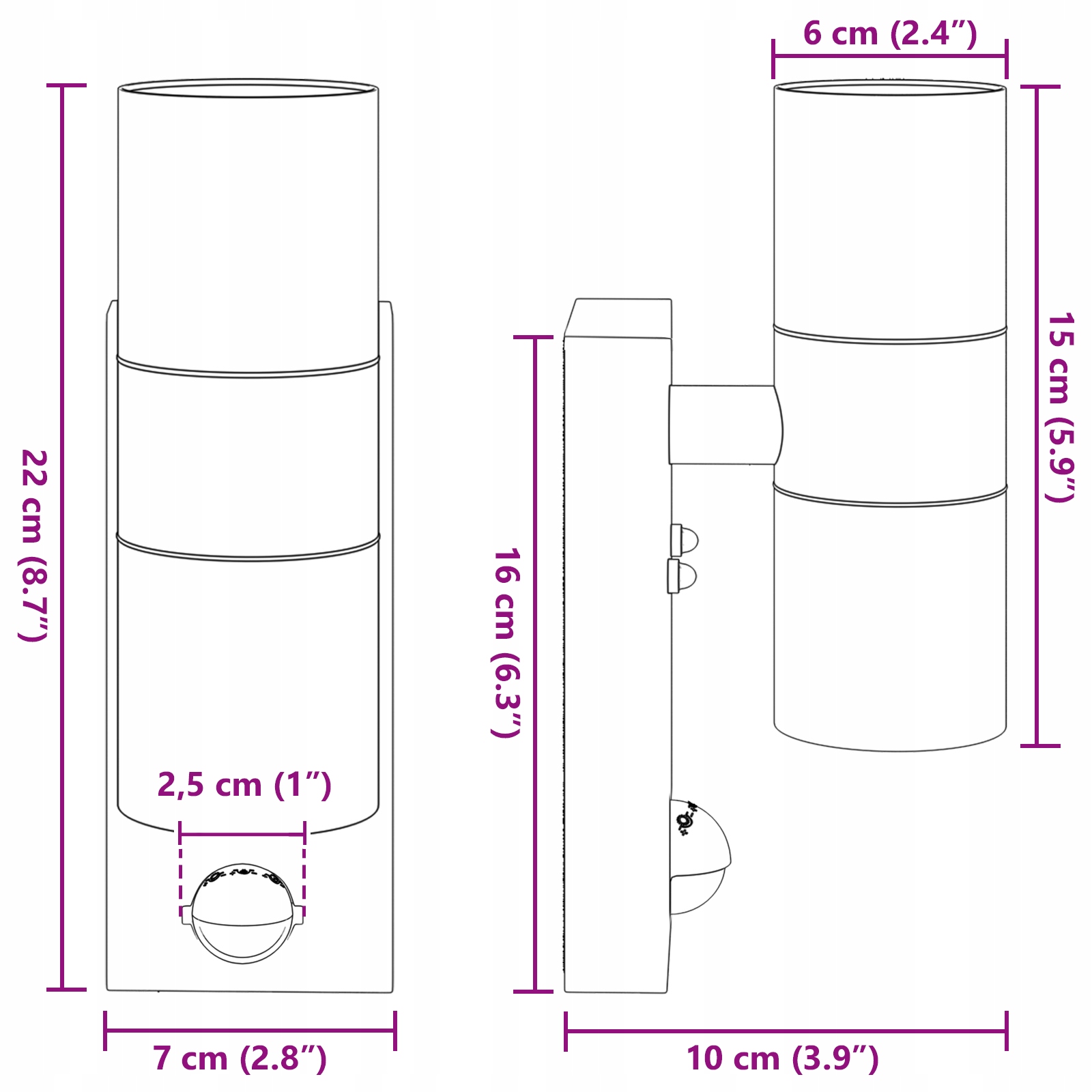 настінна лампа з датчиком руху чорної нержавіючої сталі IP44