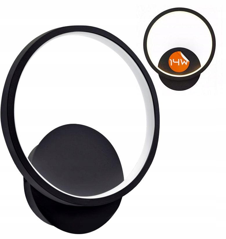 Чорний настінний світильник із вбудованим світлодіодним джерелом світла 14 Вт і нейтральним білим кольором.