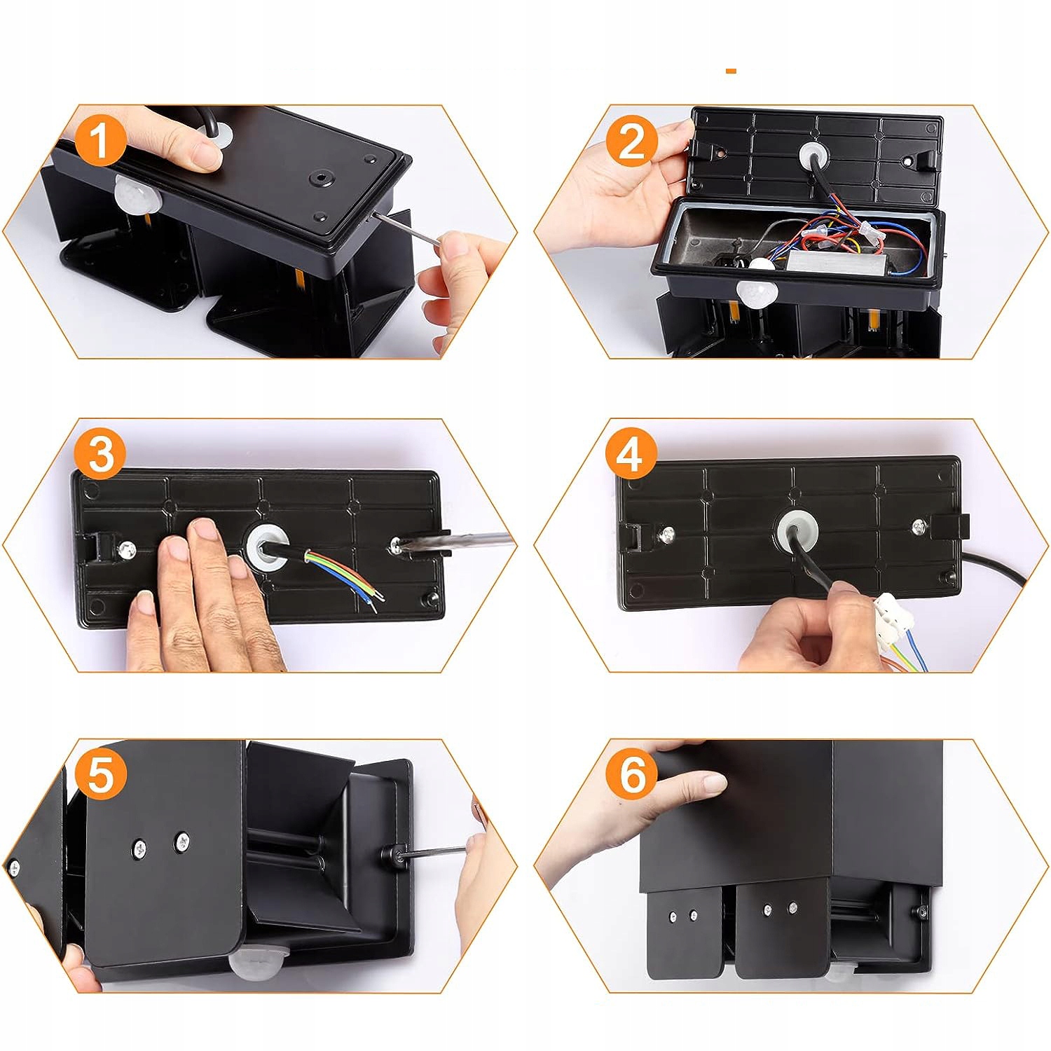 ✅Ступінь захисту IP65: чорна світлодіодна вулична настінна лампа, одноразовий набір і клей. Джерело інформації зі стандартом IP65 захищене вибухозахищеним обладнанням, тому світлодіодний настінний світильник може нормально працювати на вулиці. У клінічних умовах, світлодіодний настінний світильник із датчиками руху, який можна застосовувати для внутрішніх і зовнішніх сцен, таких як балкони, коридори, сади, двори тощо.