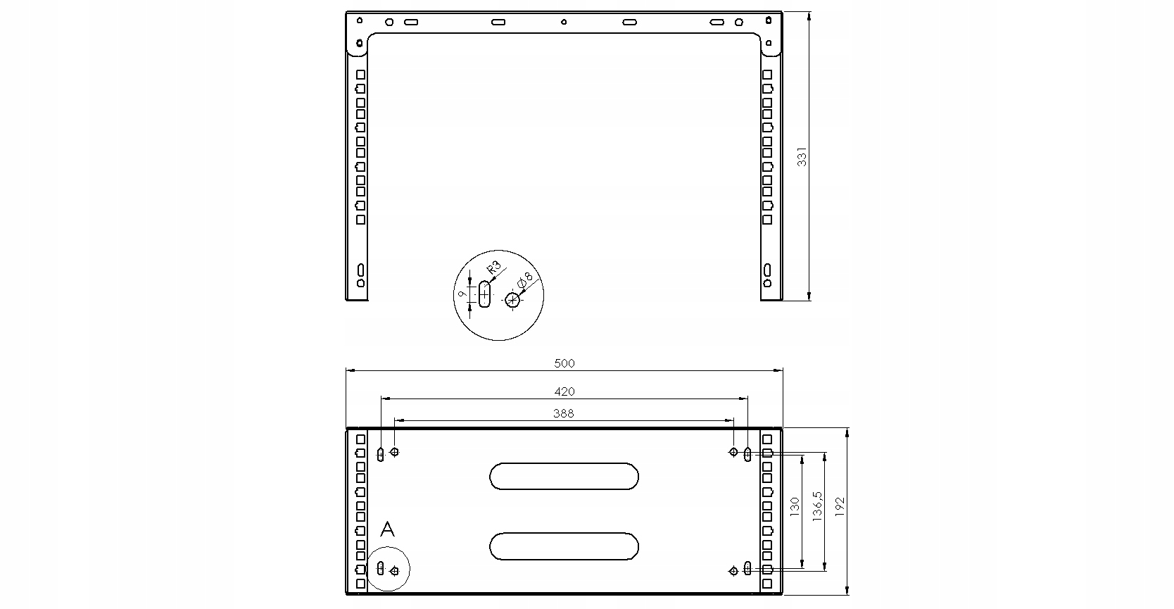 - Зовнішні розміри: 500 x 191 x 331 мм