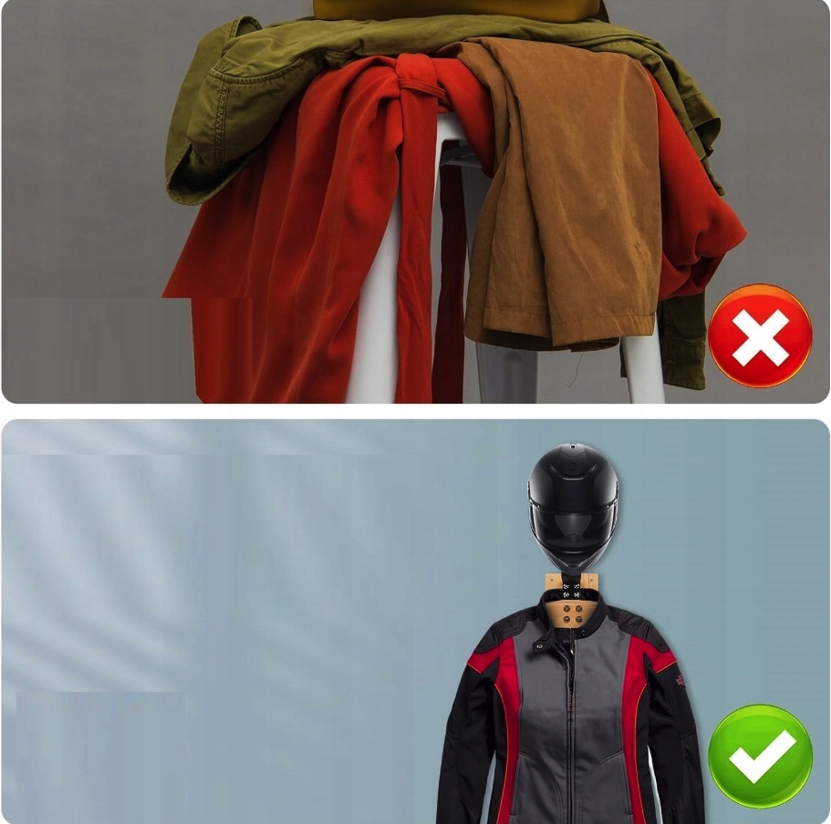 - Функціональність 2-в-1 - настінний тримач дозволяє зберігати шолом і мотоциклетну куртку одночасно.