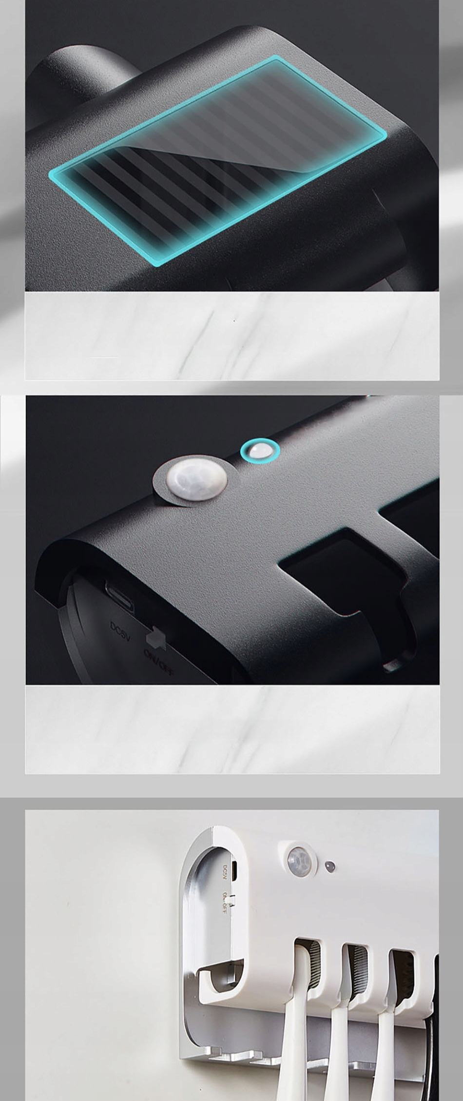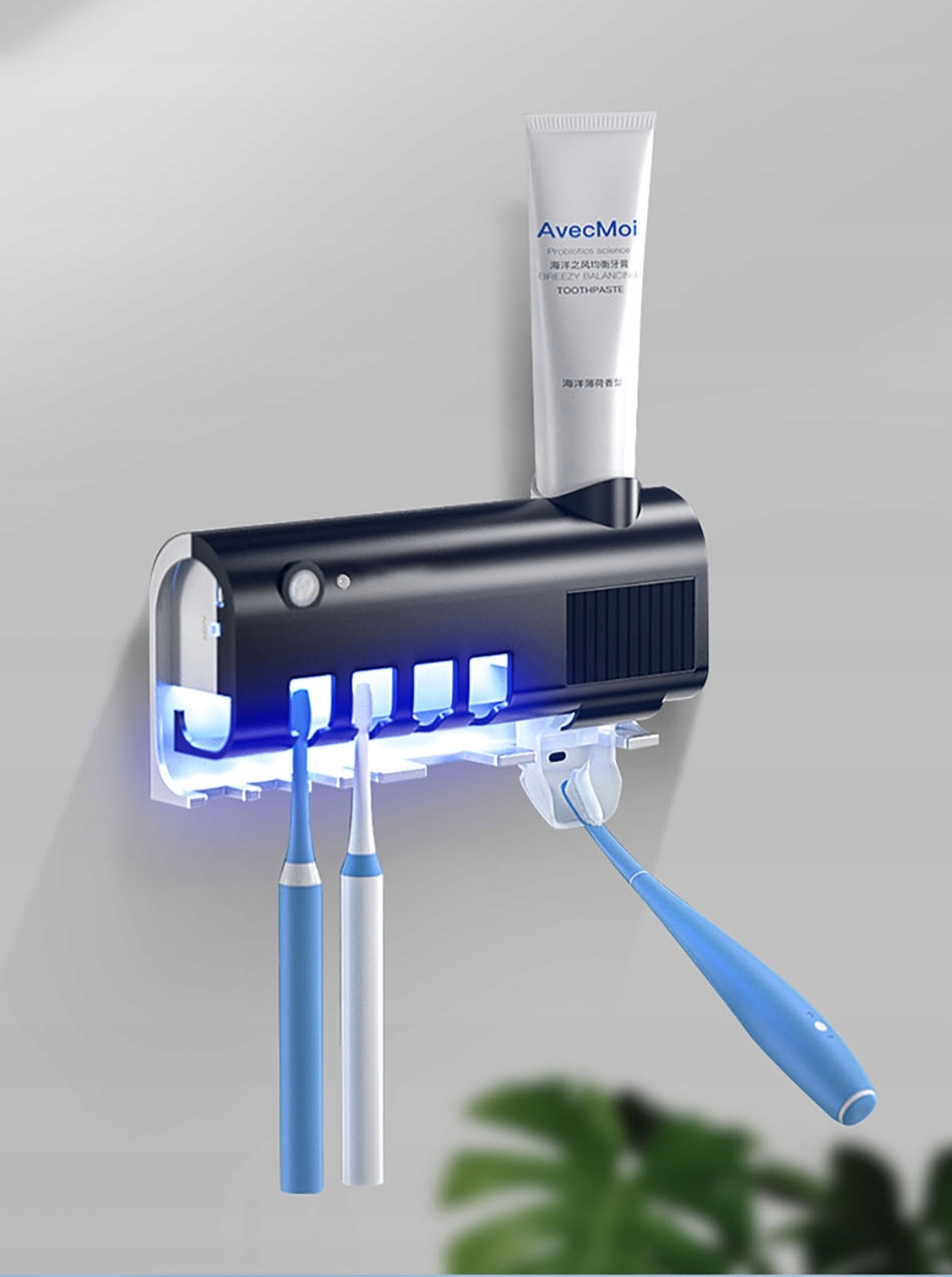 • УФ-сонячний стерилізатор: оснащений УФ-променем Стерилізатор із сонячним світлом, цей тримач для зубної щітки не лише зберігає вашу зубну щітку, але й ефективно знищує бактерії, забезпечуючи здоров’я порожнини рота.