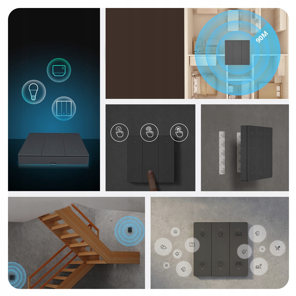 Пристрій надзвичайно простий в установці. Просто приклейте їх до стіни за допомогою самоклеючих наклейок, що входять у комплект. Вам не потрібно турбуватися про кабельне підключення! Ви також можете використовувати перемикач як звичайний пульт дистанційного керування та просто поставити його на стіл або полицю. Крім того, для живлення пристрою достатньо 2 батарейок CR2032, що забезпечить час роботи до 2 років.