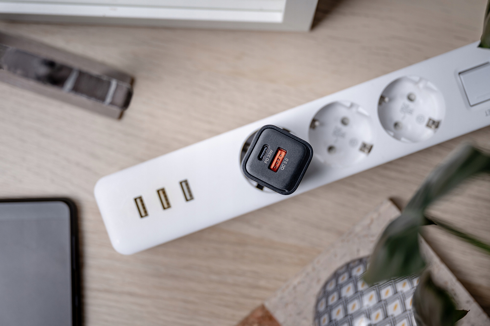 - універсальний зарядний пристрій із 1 портом USB-C і 1 портом USB-A