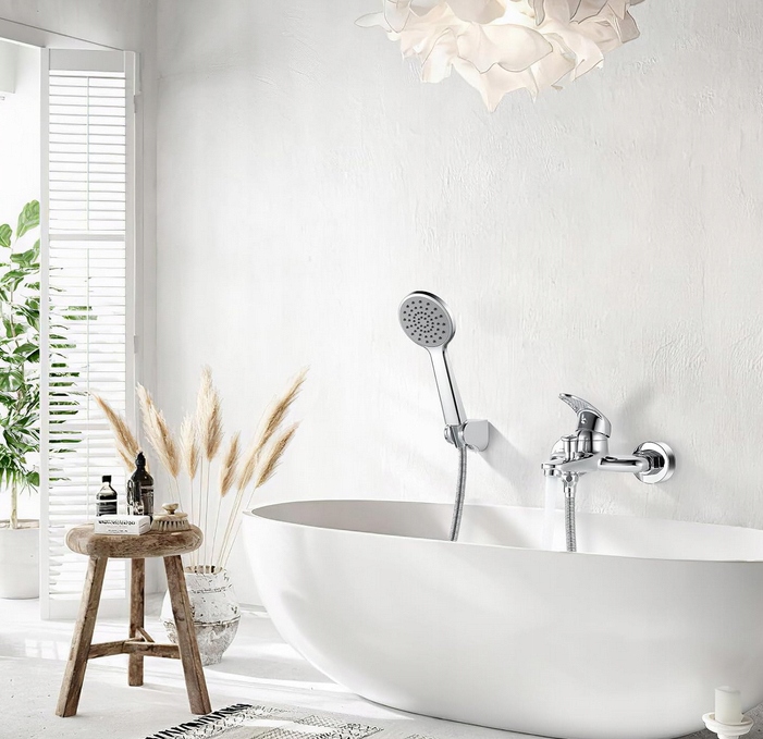 Сучасний настінний змішувач для ванни зі шлангом і душовою трубкою. Виготовлений з високоякісних матеріалів, стійких до корозії та повсякденного носіння. Універсальний, позачасовий дизайн ідеально пасуватиме до будь-якої ванної кімнати.