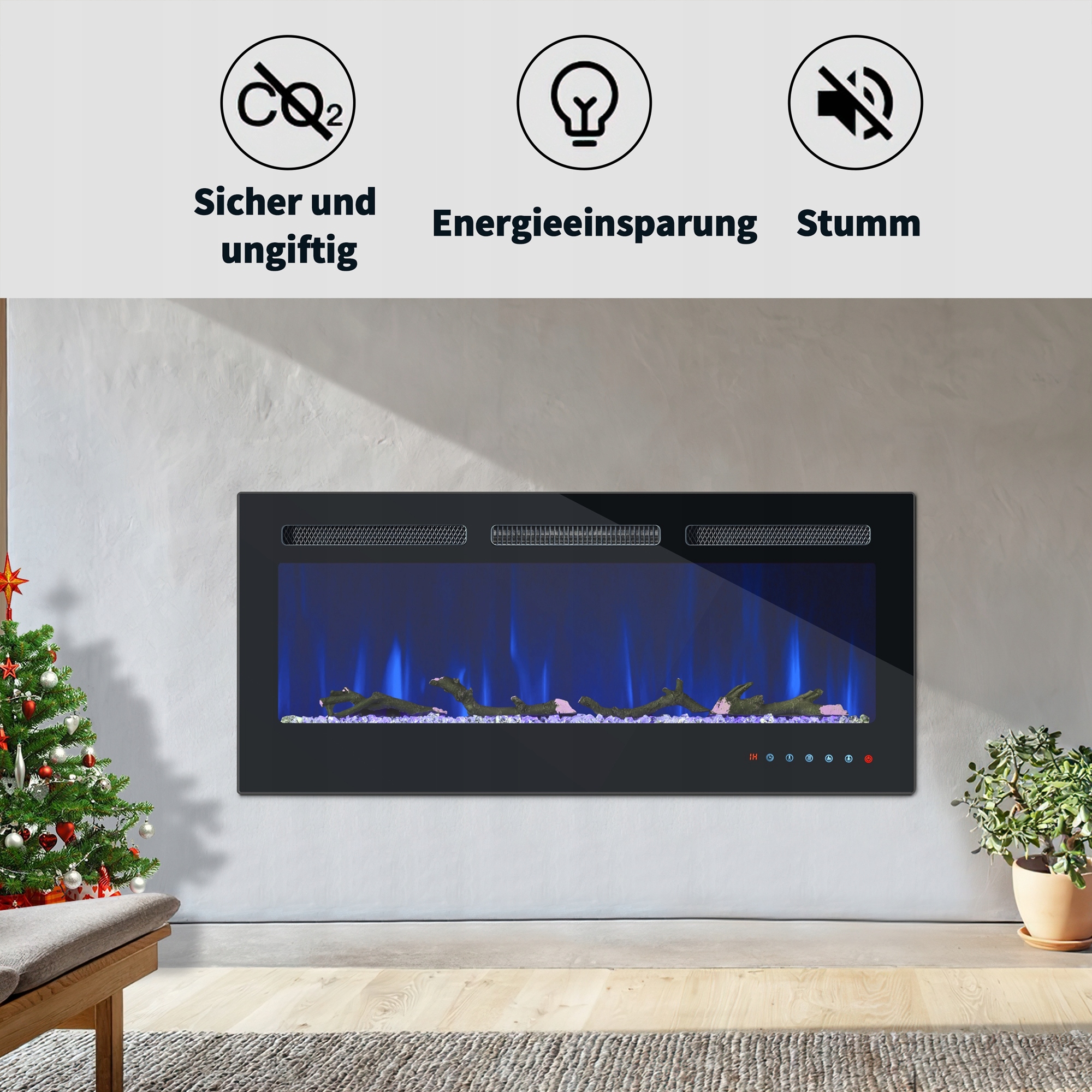 [12 реалістичних кольорів полум’я, 5 рівнів яскравості] У набір входять штучні поліна та кришталеві камені, які створюють реалістичний і яскравий ефект полум’я, імітуючи атмосферу м’якого розкочуваного вогню. Є 5 ефектів полум'я та 12 ефектів кристалів (включаючи кристали та поліна). Як потужністю, так і рівнем полум’я можна керувати за допомогою пульта дистанційного керування.