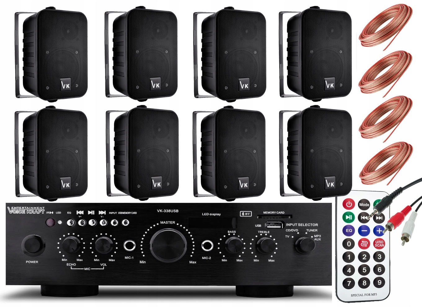 НАСТІНОВІ КОЛОНКИ 8 ШТ РАДІО ПІДСИЛЮВАЧ BLUETOOTH