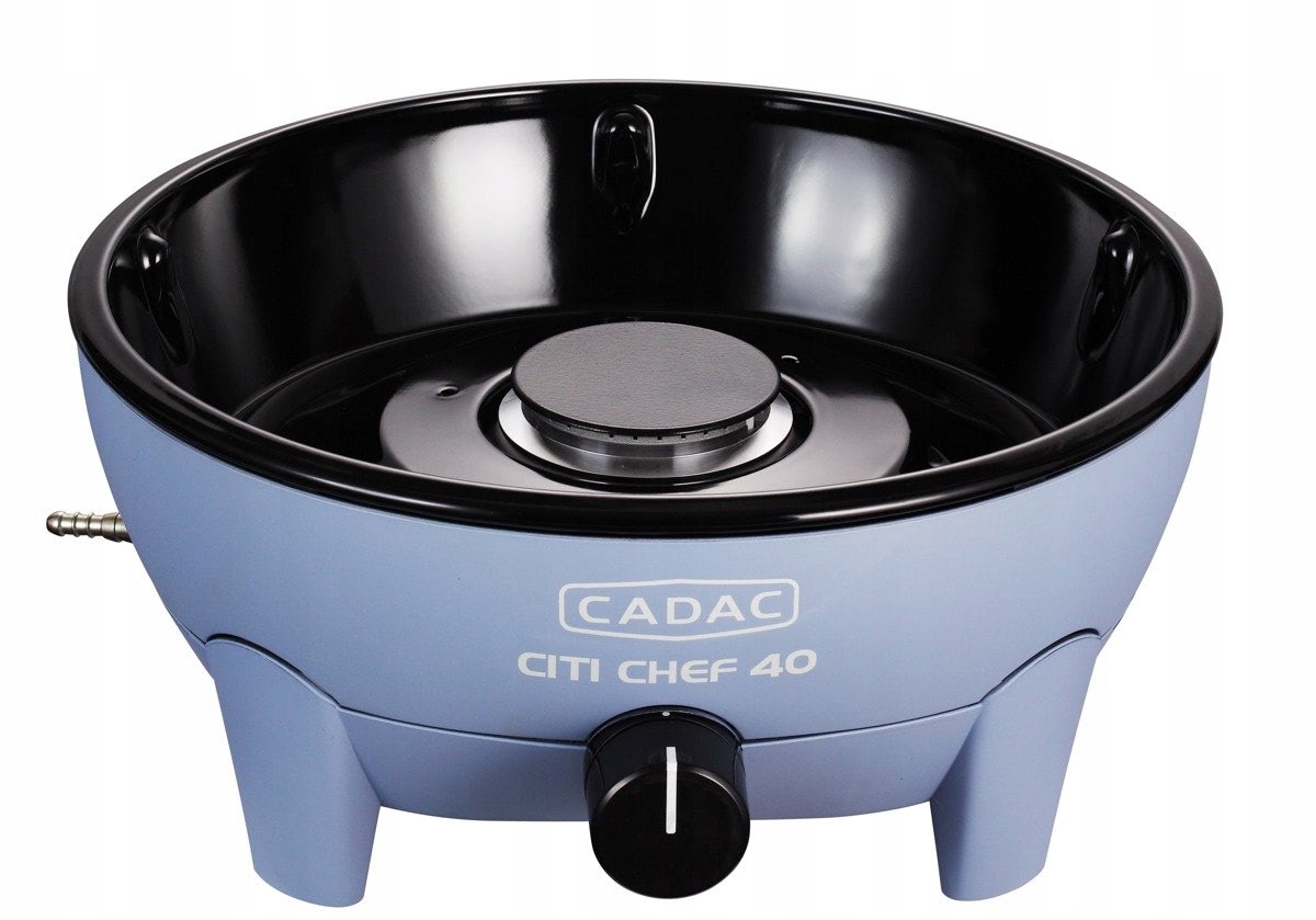 Citi Chef 40 — міцний, компактний і портативний газовий гриль, який можна розмістити на столі чи шафі. Він оснащений алюмінієвою решіткою, покритою керамічним покриттям, яка дуже рівномірно розподіляє тепло. Резервуар для жиру розташований у зовнішній чаші, тому його легко зняти та помити. У стандартне оснащення входить підставка, на якій, окрім каструлі чи чайника, ви також можете розмістити інші поверхні CADAC для приготування їжі, наприклад, сковороди для паельї або камінь для випікання піци.