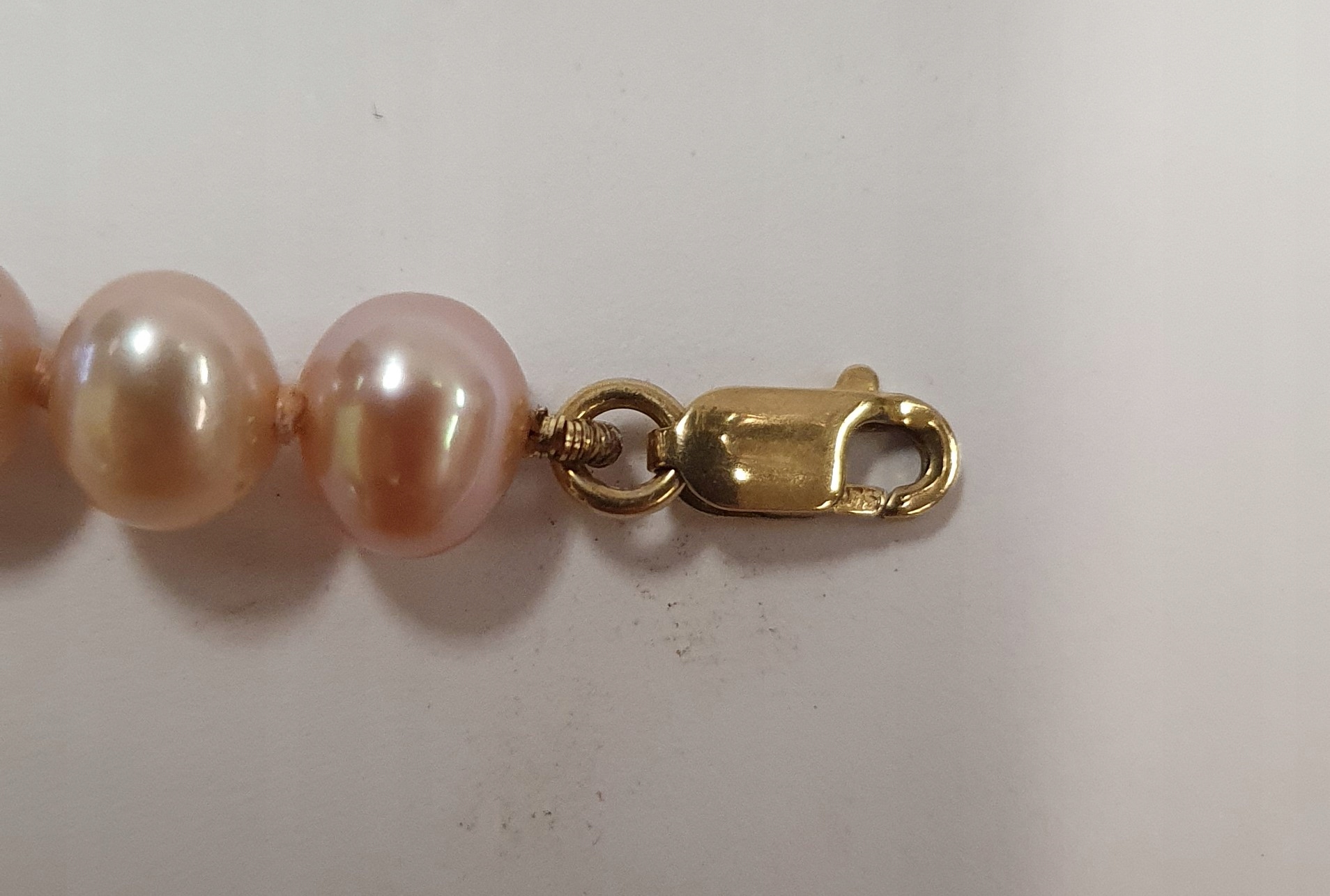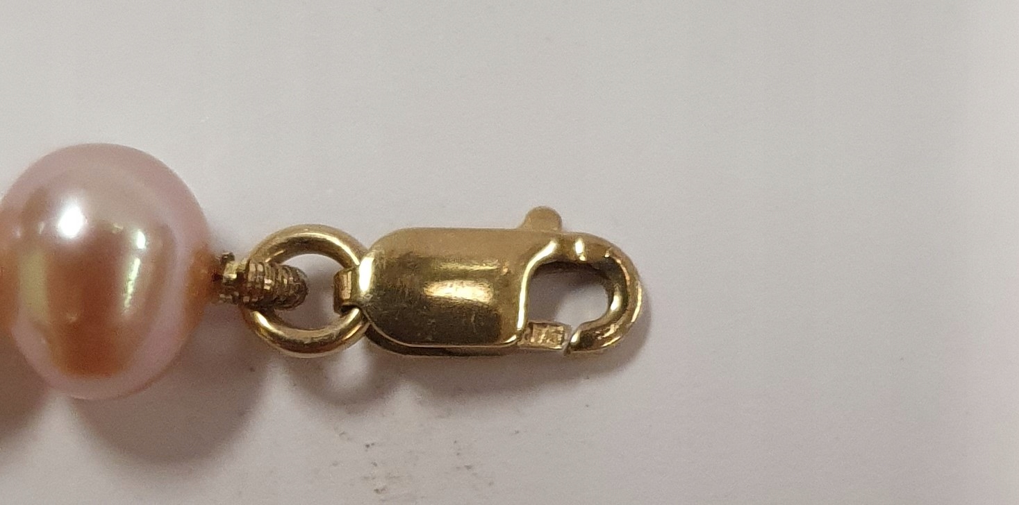 naszyjnik różowe perły, złote zapięcie