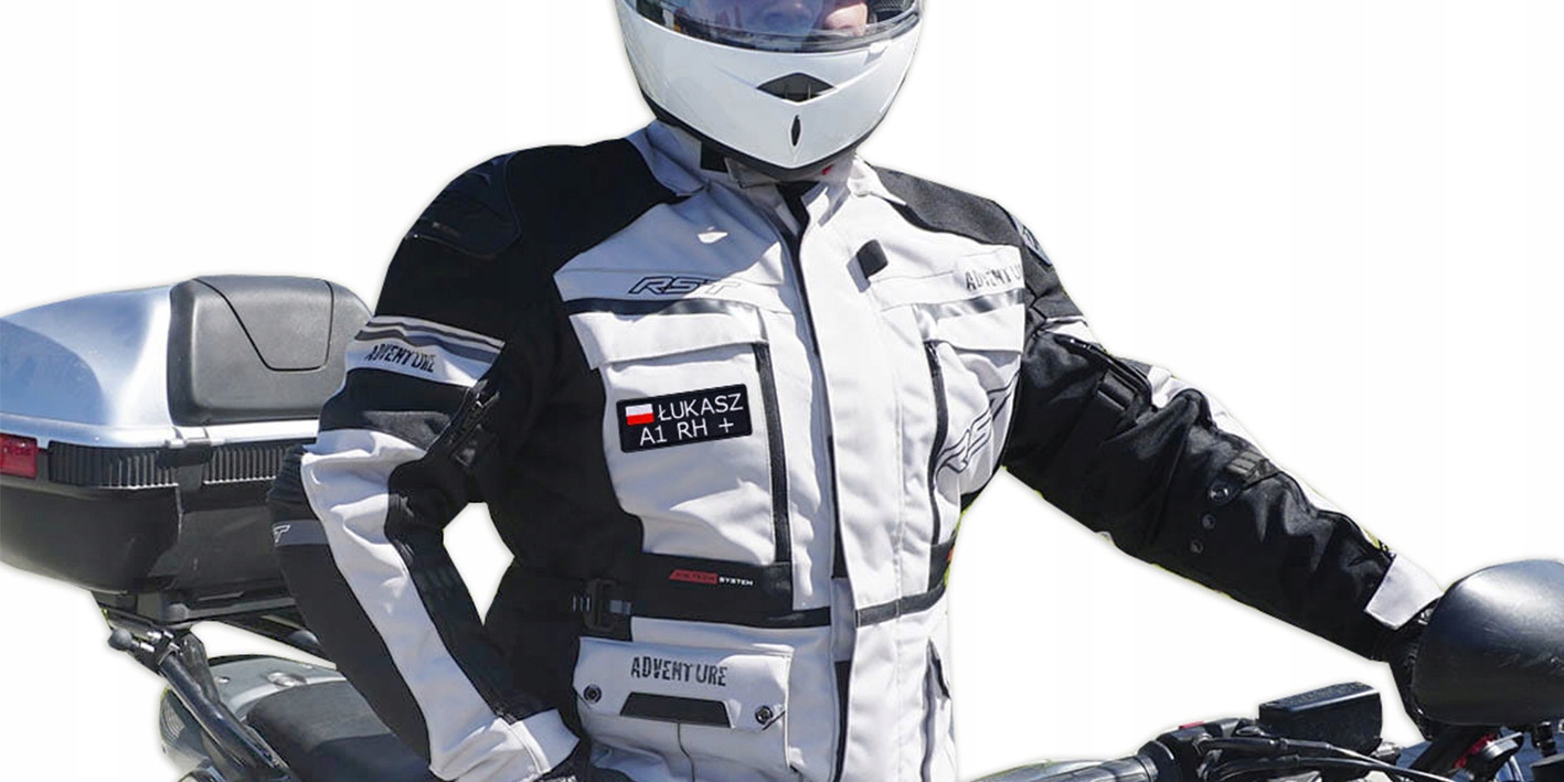 Naszywka imiennik motocyklowa z grupą krwi na kurtkę sakwę torbę