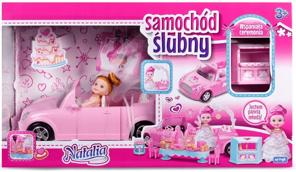 Запросіть друзів і улюблених ляльок на весілля до Наталії та разом покатайтеся на рожевій машині.