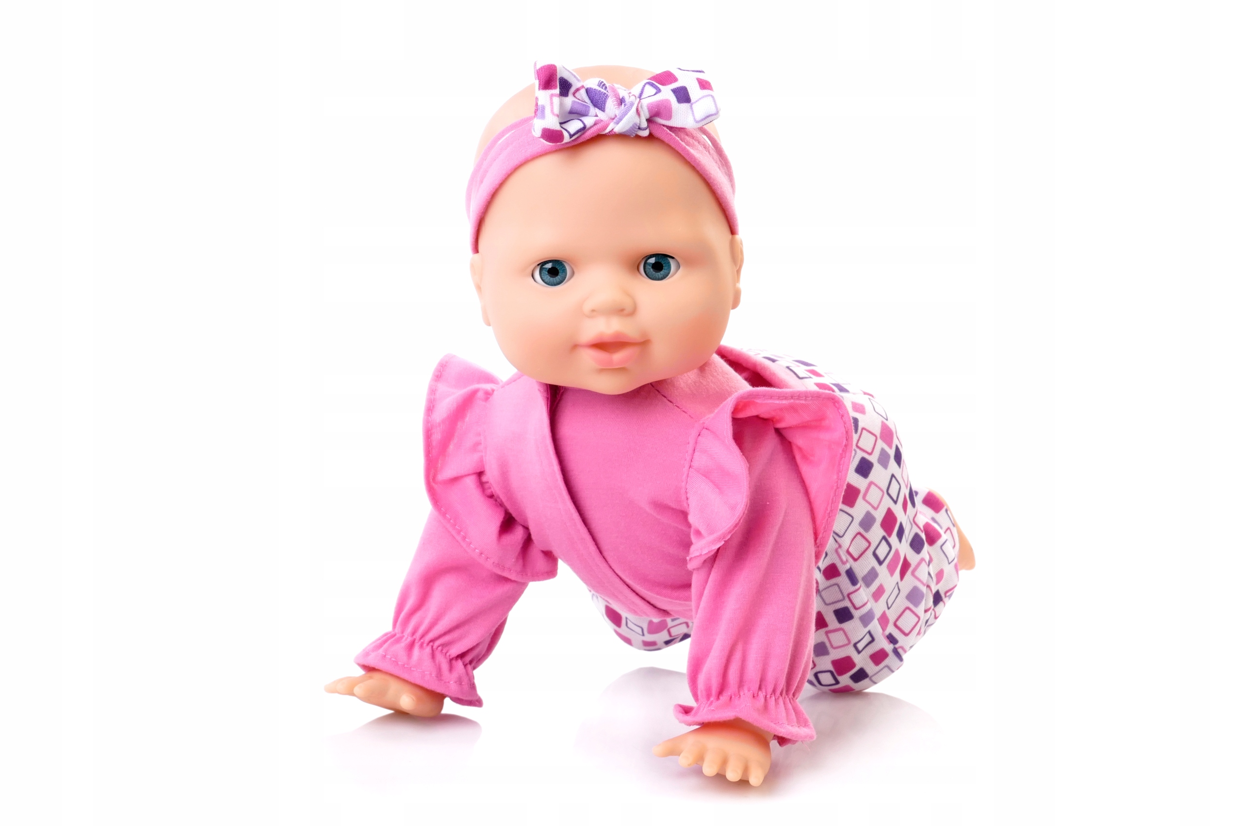 Ця лялька неодмінно здивує вас своїми численними можливостями. Дивовижна дитина, яка вміє повзати, лепетати, сміятися та плакати. Лялька виглядає як справжня дитина. У неї гарний рожевий наряд і капелюшок.