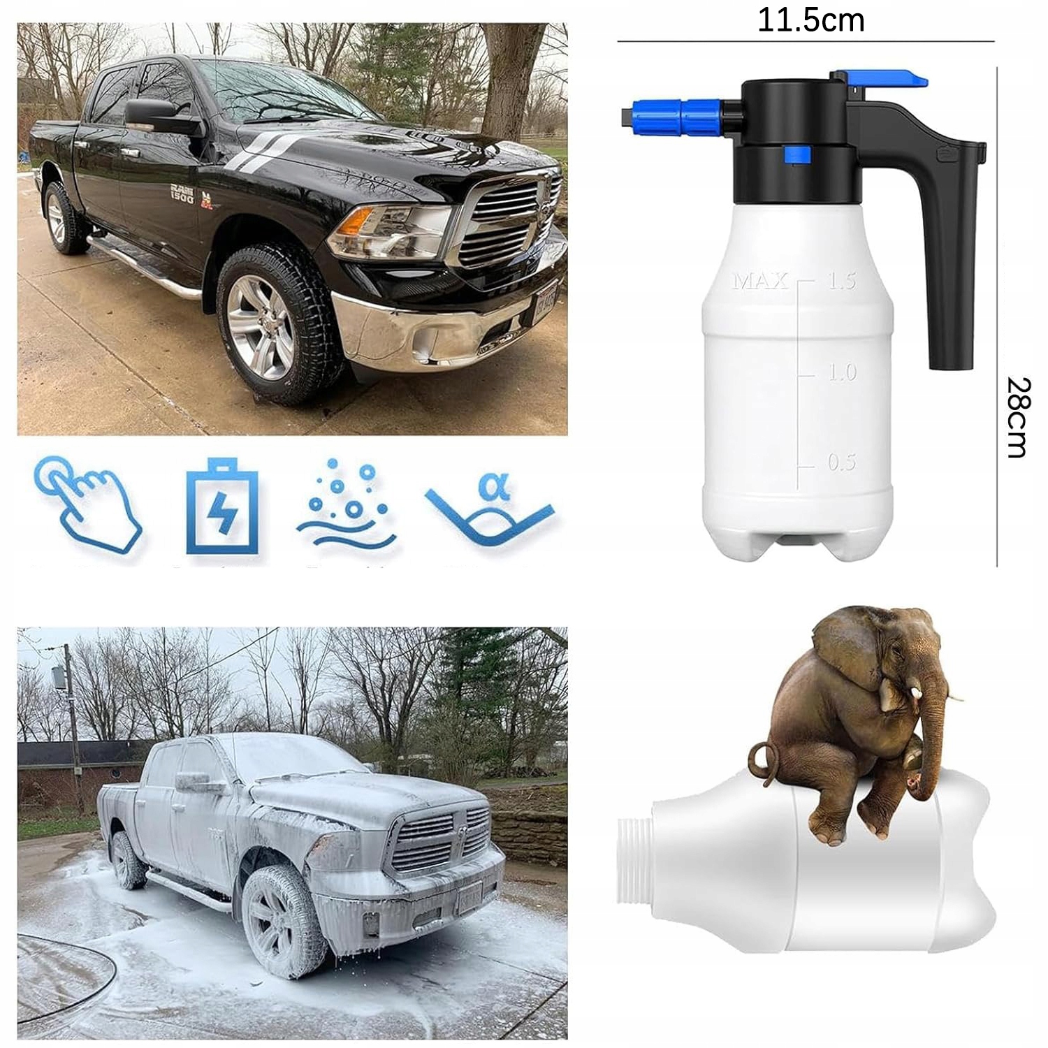 Велика потужність 1,5 -літер може задовольнити ваші щоденні потреби, пов’язані з миттям автомобіля. Широкий отвір дозволяє легко заповнити рідини і запобігає розливу. Тіло чайника виготовлено з міцного матеріалу ПЕ, що дуже довговічно. Забезпечити комфорт, не капаючи завдяки ідеальному, тісному дизайну.