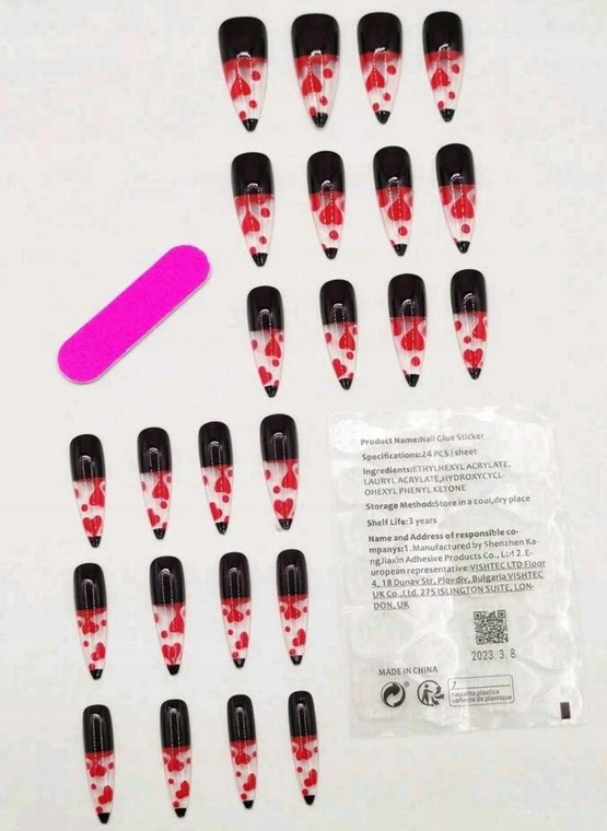 НАТИСНІТЬ КІНЧИКИ НІГТІВ 24 чорні СЕРЦЯ кров КИНЖАЛ ХЕЛОВІН