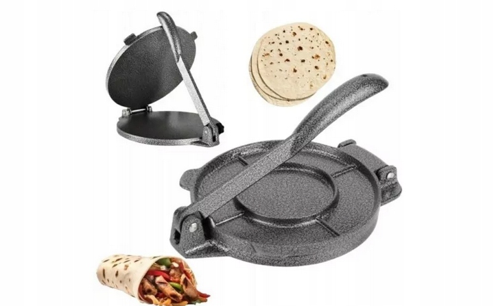 залізний прес для тортилії - це кухонний пристрій, призначений для ручного формування та сплющення тіста на тортилії .