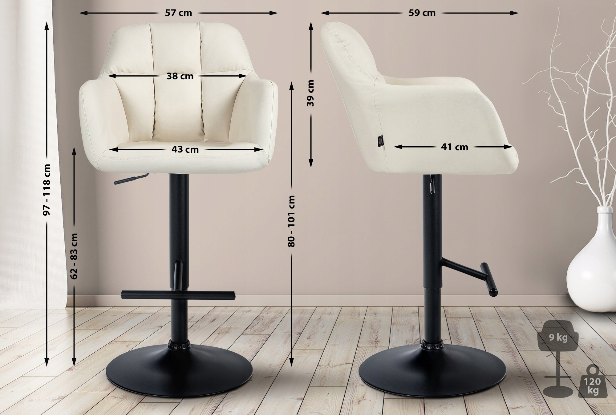 Barhocker Natoma Kunstleder - це поєднання функціонального дизайну та виняткового комфорту сидіння. Завдяки регульованій висоті від 97 до 118 см, шириною 57 см та глибині 59 см, вона ідеально адаптується до різних висот. Сидіння 43 х 41 см та ергономічна спинка забезпечують підтримку та зручність.
