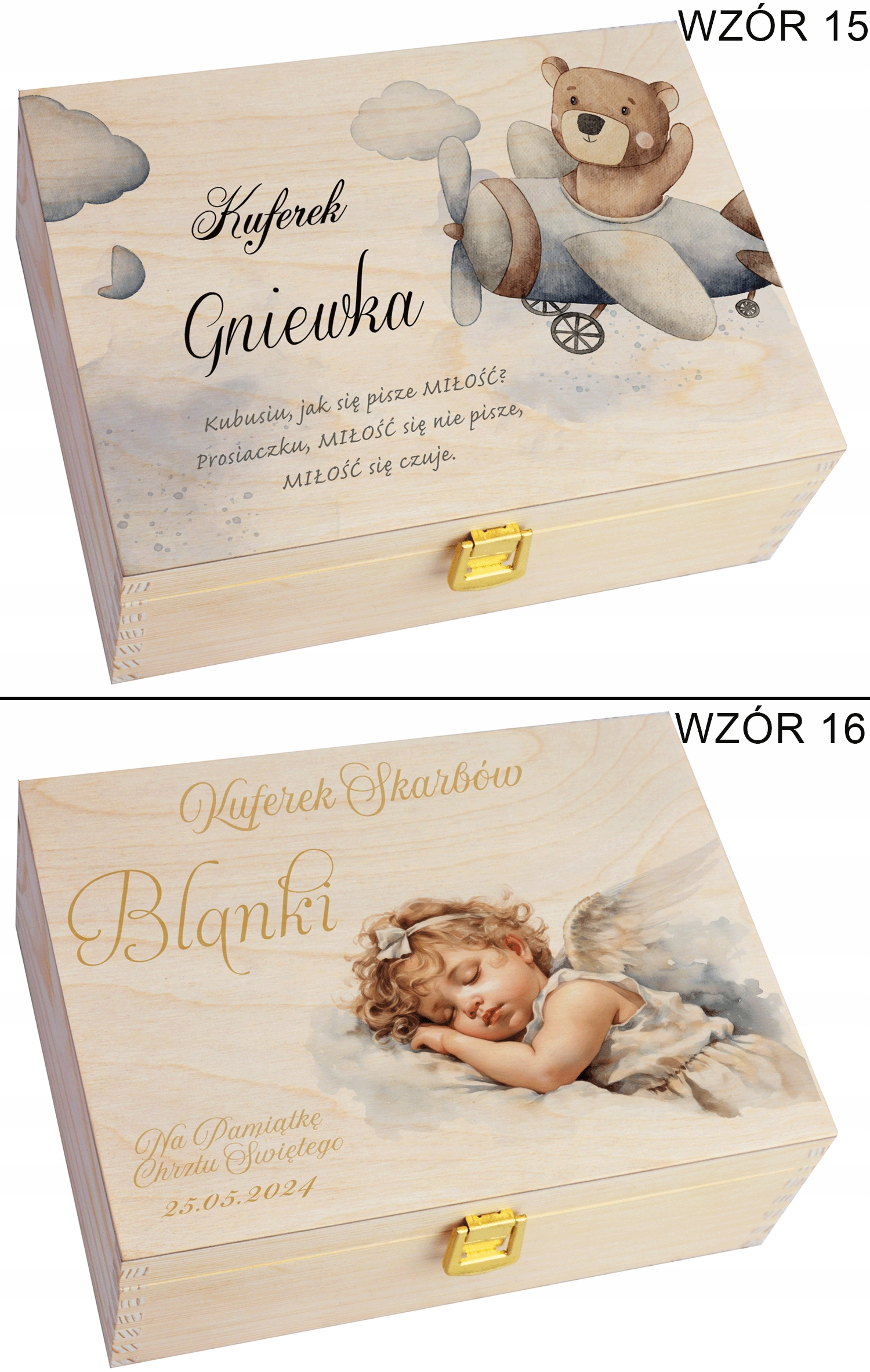 Skrzynka naturalna pudełko na pamiątki - prezent chrzest urodziny