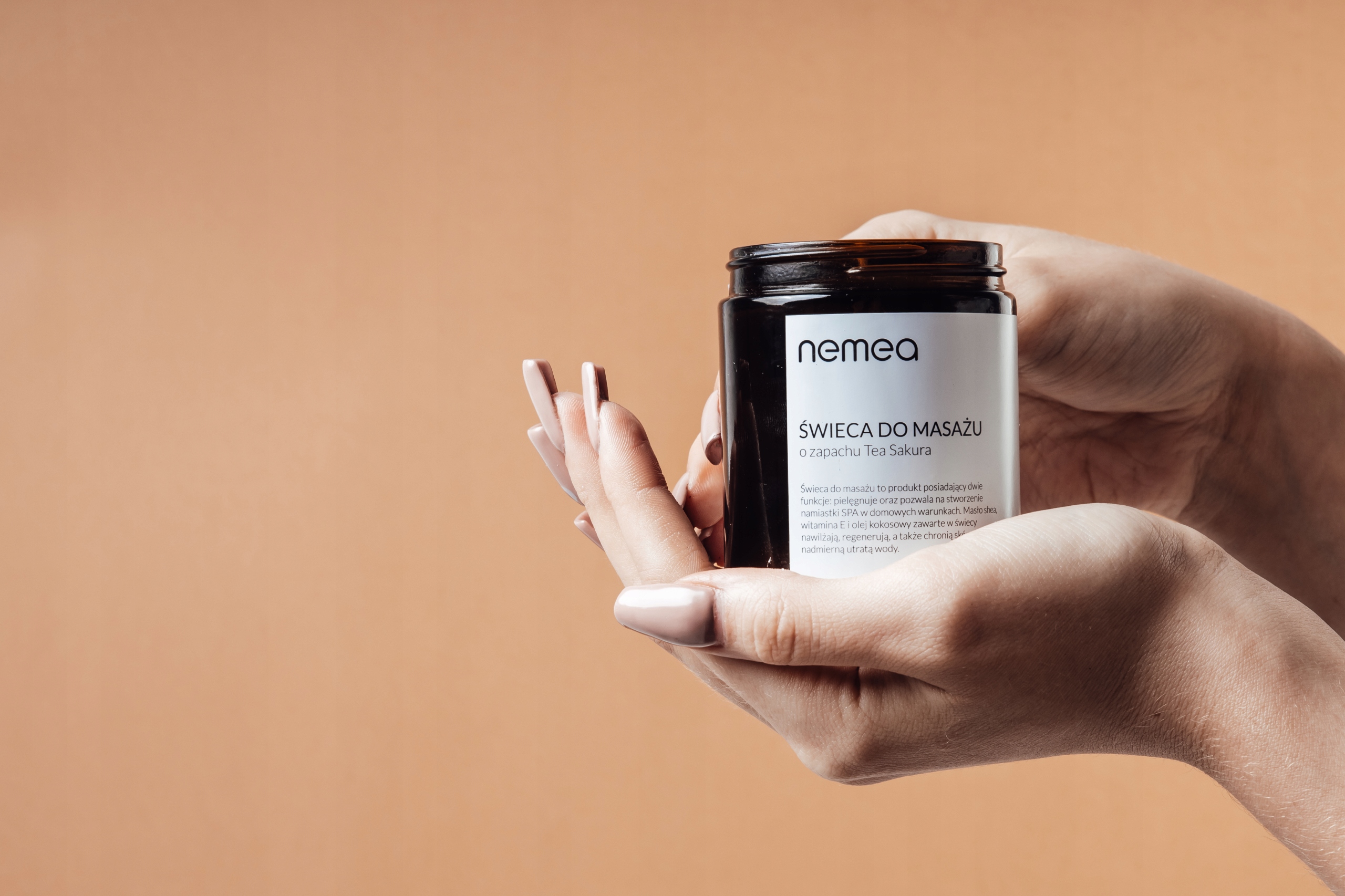 НАТУРАЛЬНА СВІЧКА ДЛЯ РОЗСПОЛОШУЮЧОГО МАСАЖУ РЕГЕНЕРУЮЧА ВЕГАНСЬКА ЧАЙ І САКУРА