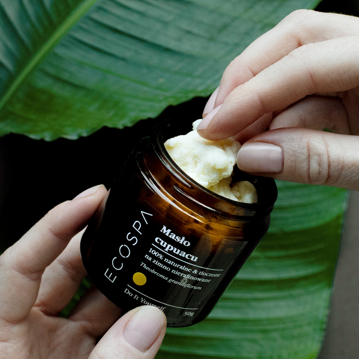 Масло ECOSPA Cupuacu — натуральний нерафінований продукт, отриманий із плодів дикого дерева какао Theobroma grandiflorum в Амазонії. Воно характеризується унікальним ароматом і відтінком, а його багатий склад, включаючи тригліцериди, забезпечує чудове зволоження та регенерацію шкіри. Завдяки чудовій здатності поглинати воду, масло підтримує тривале зволоження.