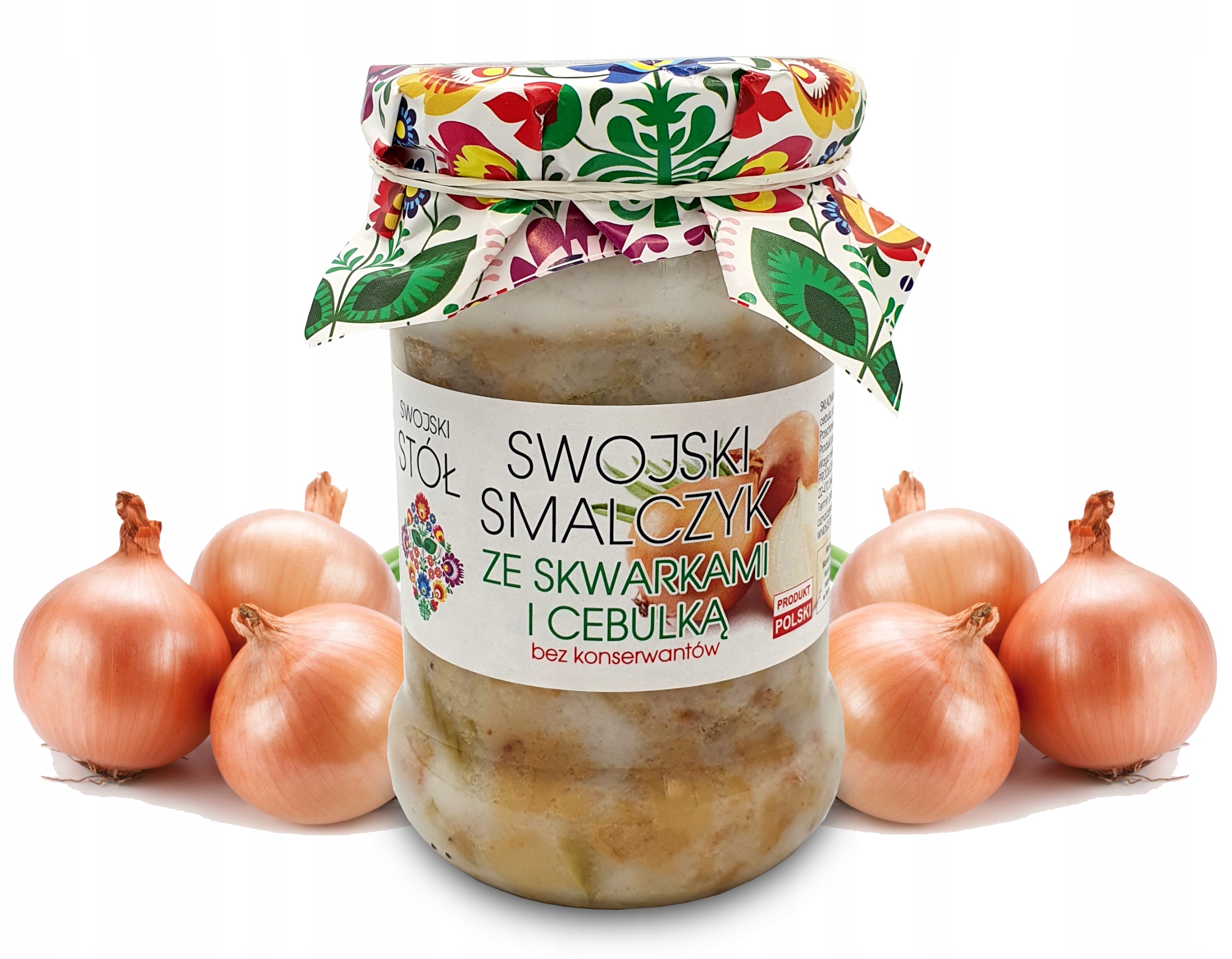Інгредієнти: сало свиняче зі шкварками (81%), цибуля (18%), сіль кухонна, перець.