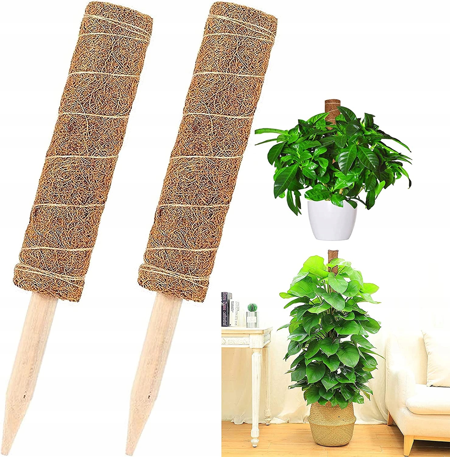 - Стовпи з кількома пасмами натуральної койри, що простягаються вгору по стовпу та забезпечують міцну, довговічну підтримку для в'юнких рослин. Кокосове волокно з кокосової пальми також забезпечує необхідну аерацію та утримання вологи для рослин, а природний вигляд стовпа підходить для будь-якого саду.