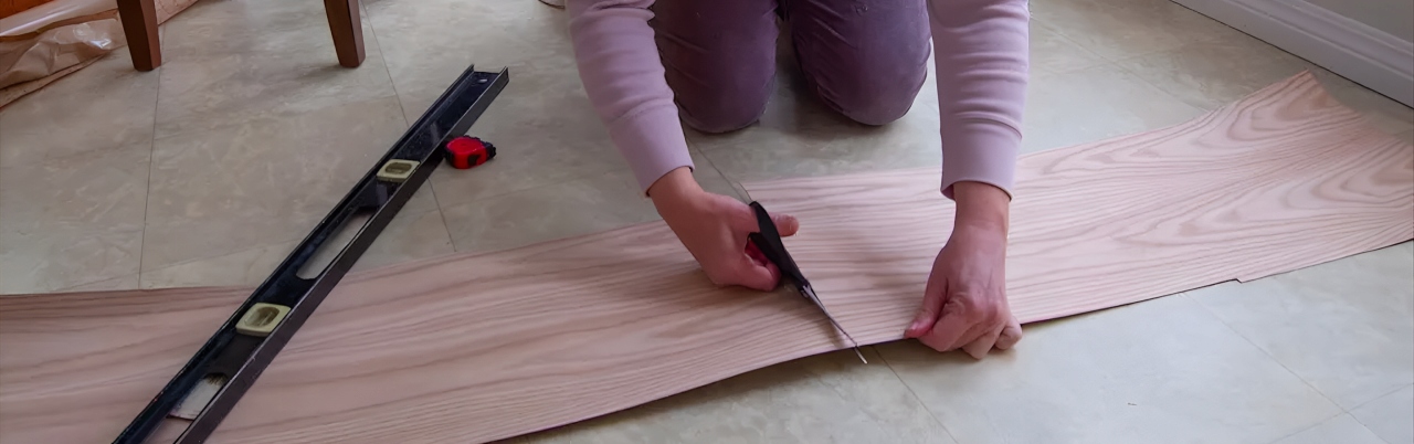 - Вимірювання та різання шпону: перед тим, як зняти захисний шар, ретельно виміряйте площу, яку потрібно покрити, і підготуйте відповідні розміри шпону. Залиште про всяк випадок невеликий запас матеріалу. Використовуйте ножиці або різак для шпалер, щоб точно розрізати шпон.