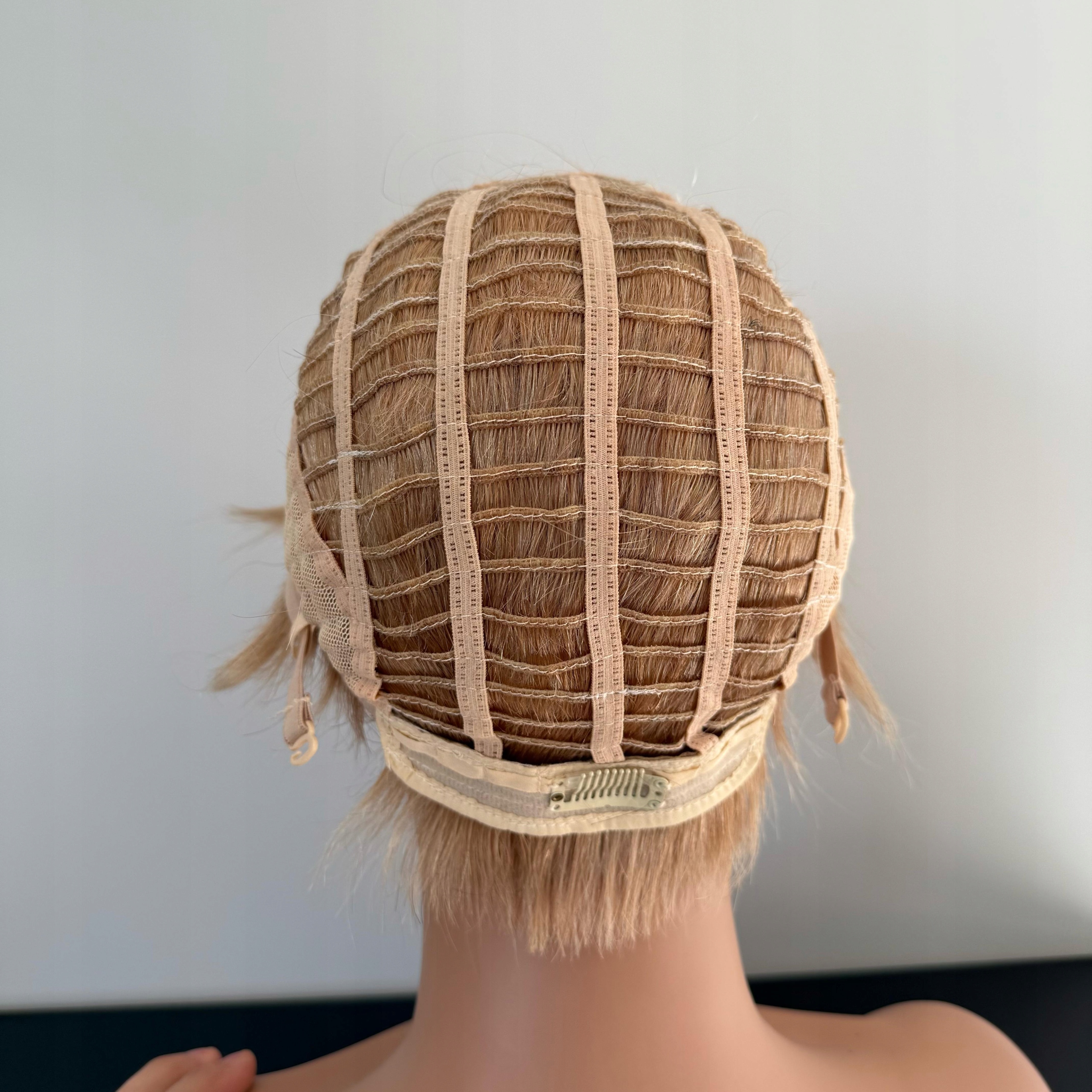 Всередині перуки прикріплений ремінь для регулювання окружності, завдяки якому перука ідеально адаптується до кожної голови. У ньому також є манжети, щоб підходити до перуки з волоссям.