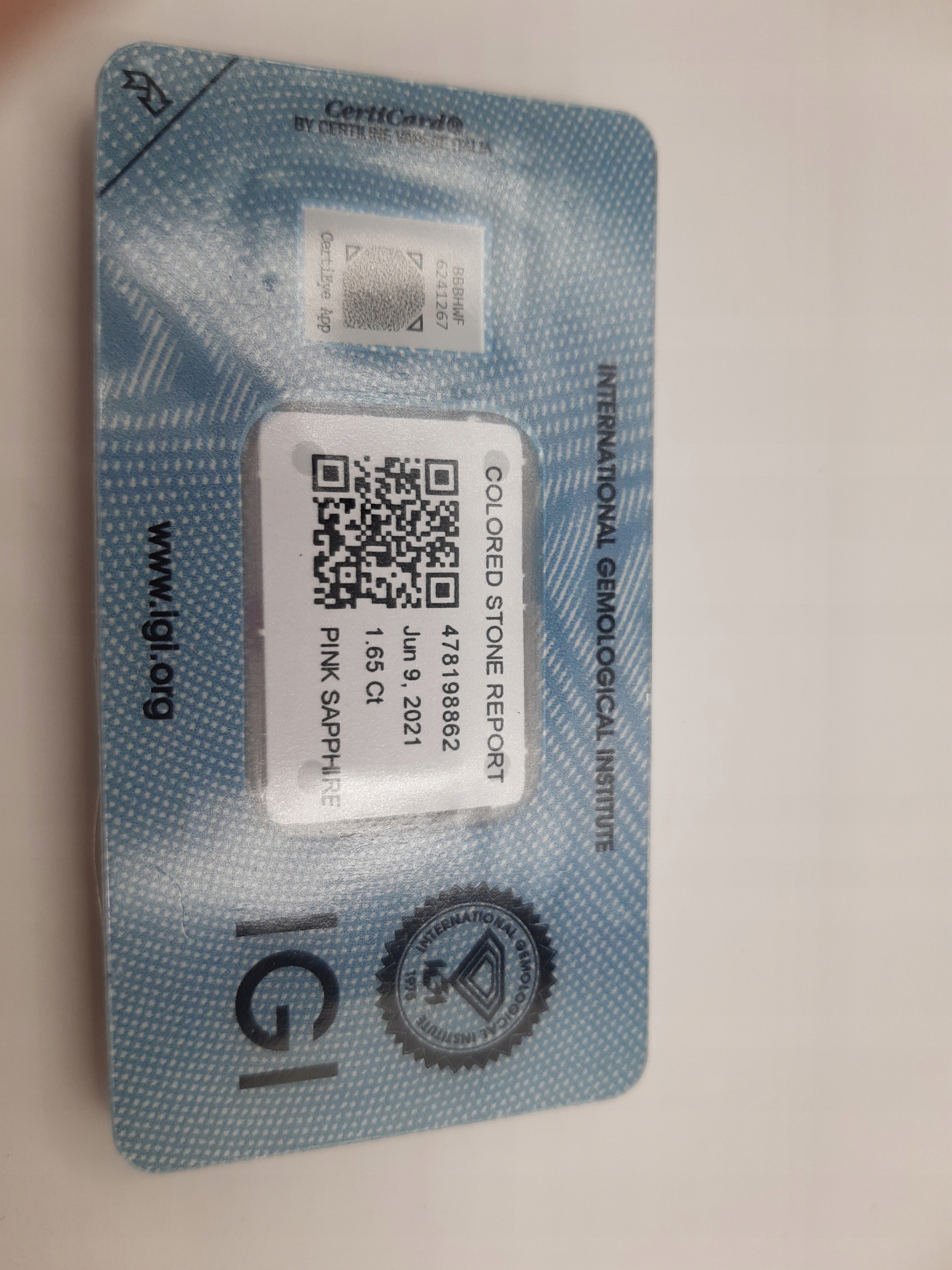 НАТУРАЛЬНИЙ РОЖЕВИЙ САПФІР 1,65 ct IGI СЕРТИФІКАТ