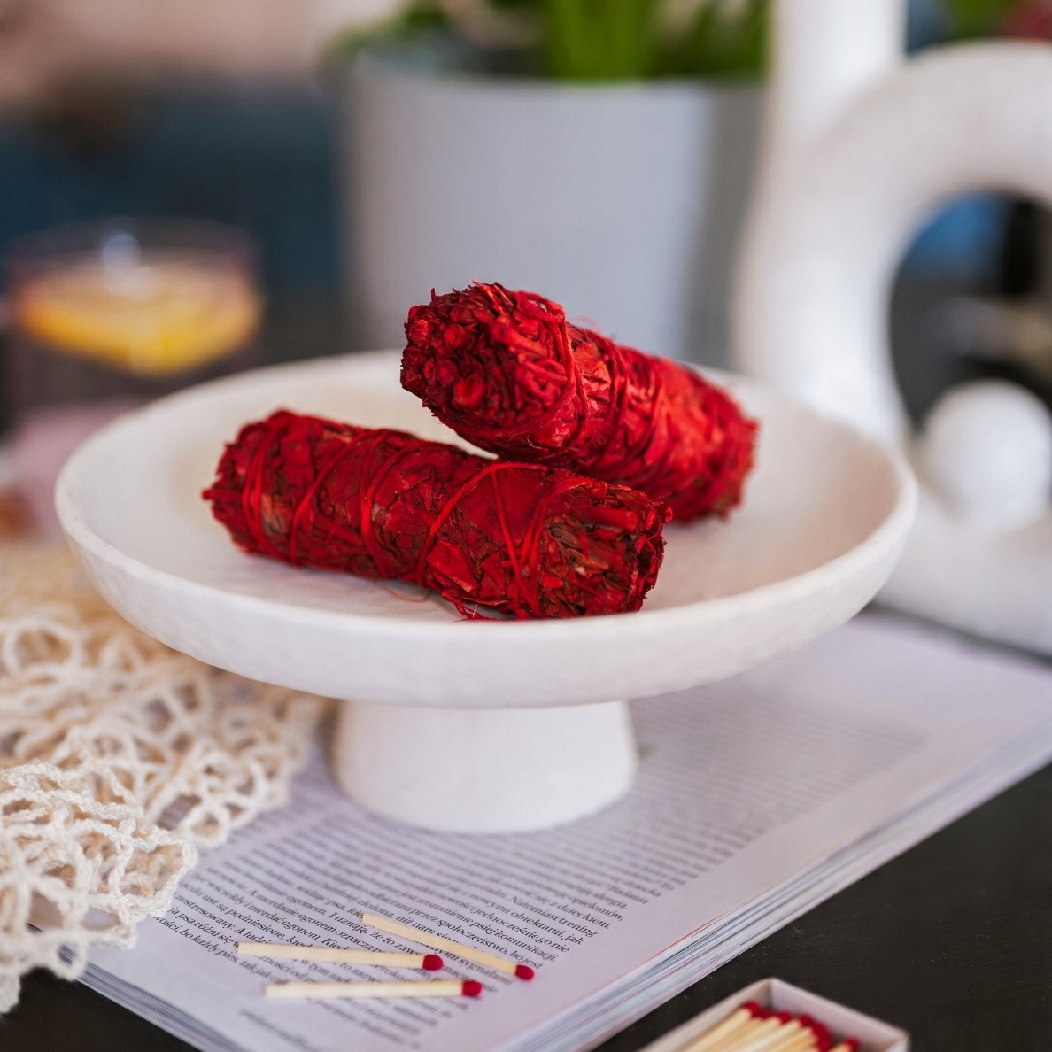 Пахощі крові дракона - це пучок білого шавлії, змоченого яскраво-червоною смолою дерева Драцена (Dracaena Draco).