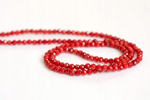 Naturalny KORAL koralowiec czerwony KULECZKI kulki kulka fasetowana sznur