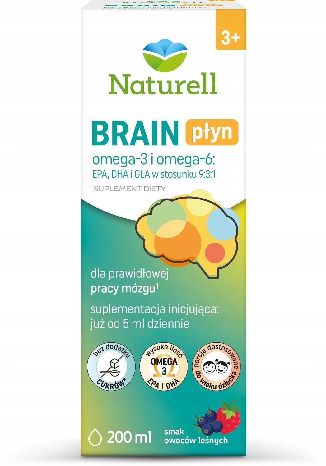 Джерелом омега-3 кислот у рідкому продукті Naturell BRAIN є високоякісна олія з мікроводоростей Schizochytrium sp. забезпечення DHA та риб’ячого жиру (анчоусів), що містить DHA та EPA, тобто жирної морської риби відповідно до рекомендацій Польського товариства педіатричної гастроентерології, гепатології та харчування (PTGHIŻD). GLA (кислота омега-6) походить з олії насіння чорної смородини. Олія чорної смородини є одним з найбагатших природних джерел GLAS.