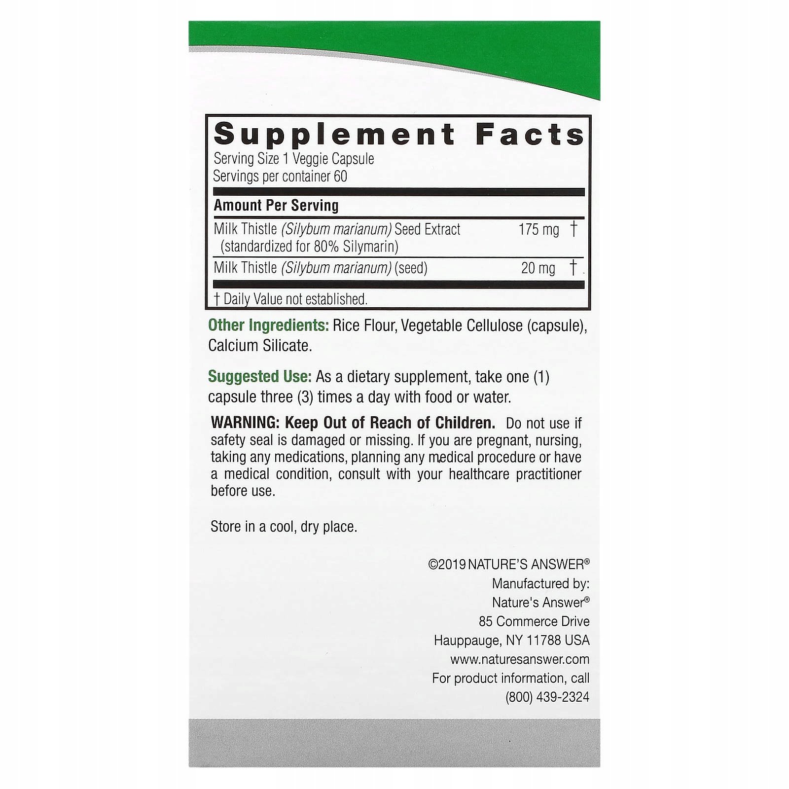 Назва продукту: Nature's Answer, розторопша, 60 вегетаріанських капсул