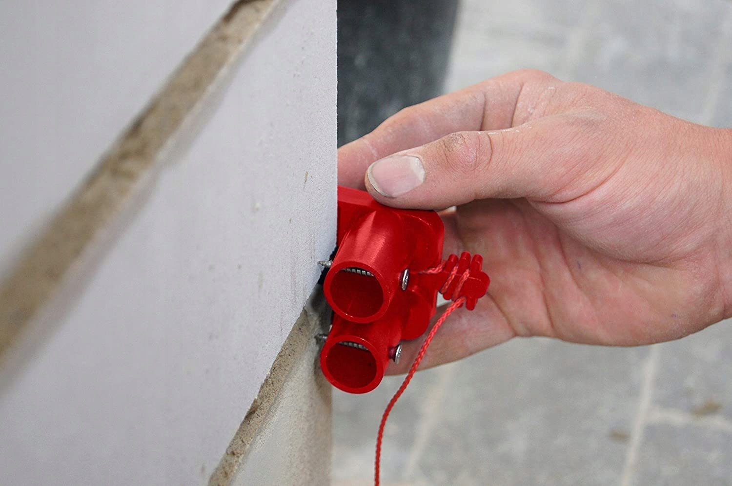 Він запобігає порізу струни об гострі краї цегли та блоків. Яскравий колір робить натягувач помітним і робить його важче втратити. Додатково кріпиться шурупами (входять в комплект)
