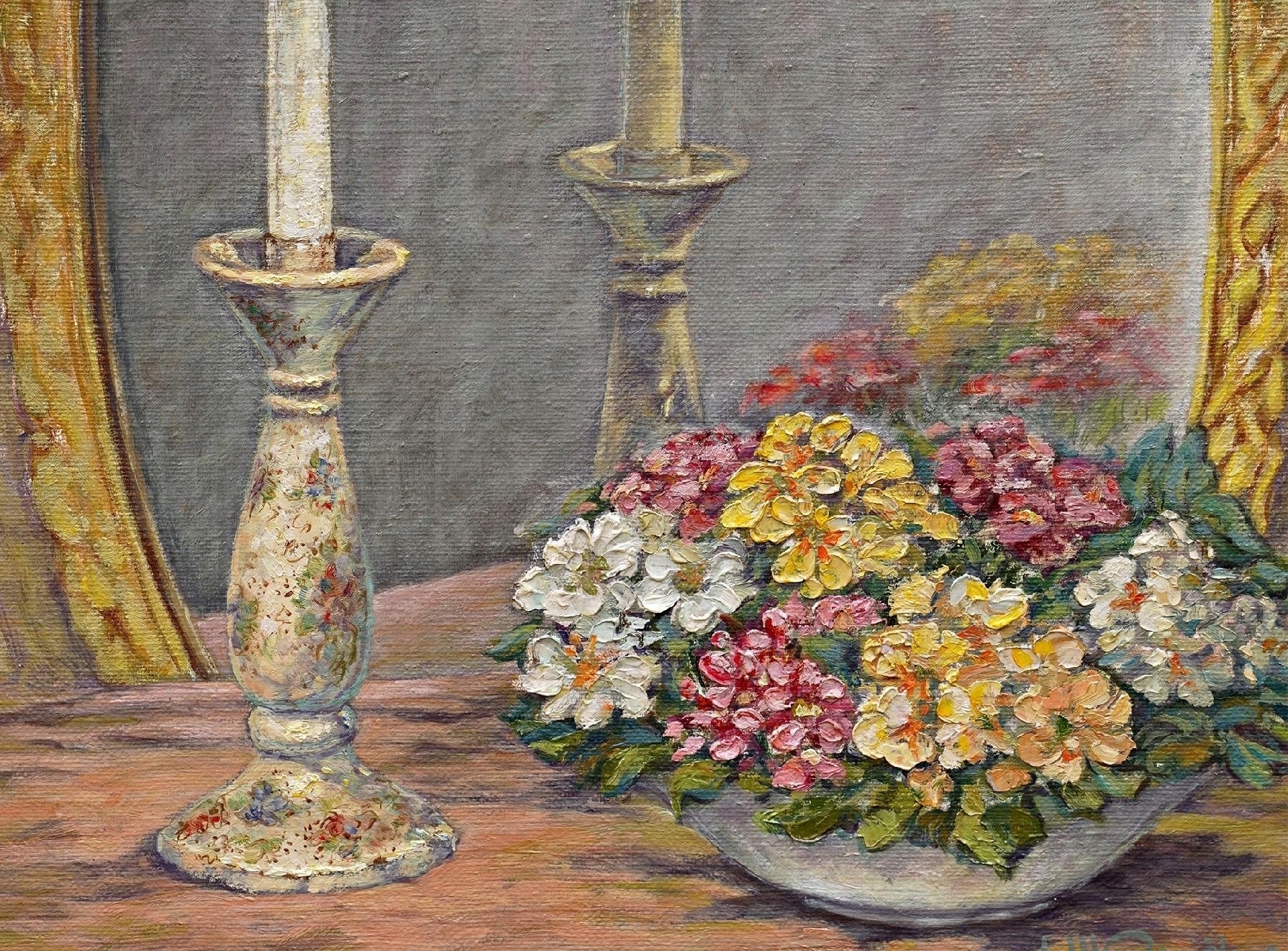 НАТЮРМОРТ З КВІТАМИ ТА ПІДСВІЧНИКАМИ